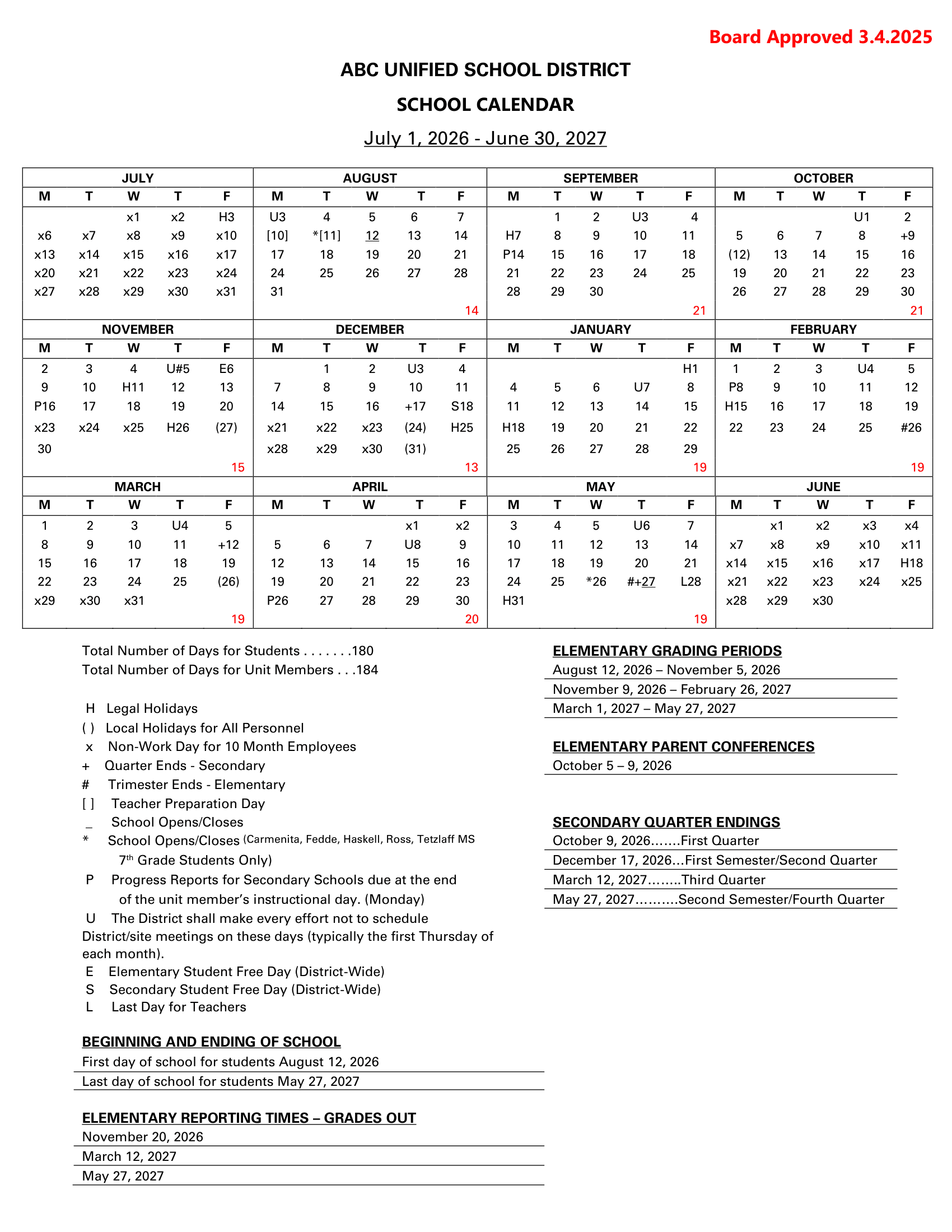 ABC Unified School District Calendar (2026-2027)