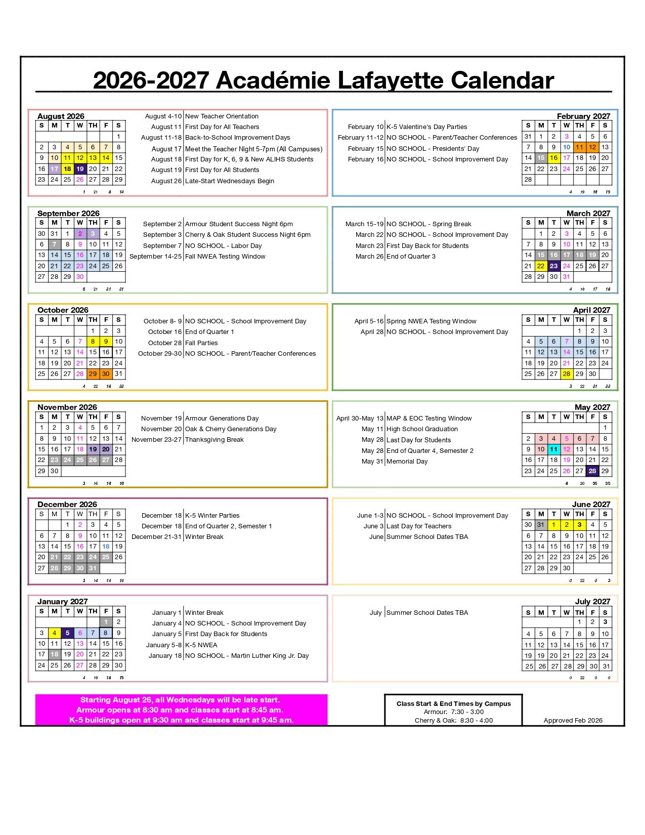 | Aug 26, 2026 | Late-Start Wednesdays Begin |