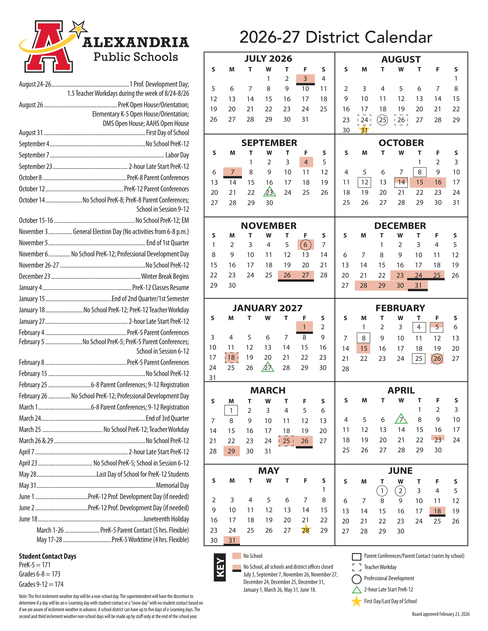 Alexandria Public Schools Calendar 2026-2027 FAQs