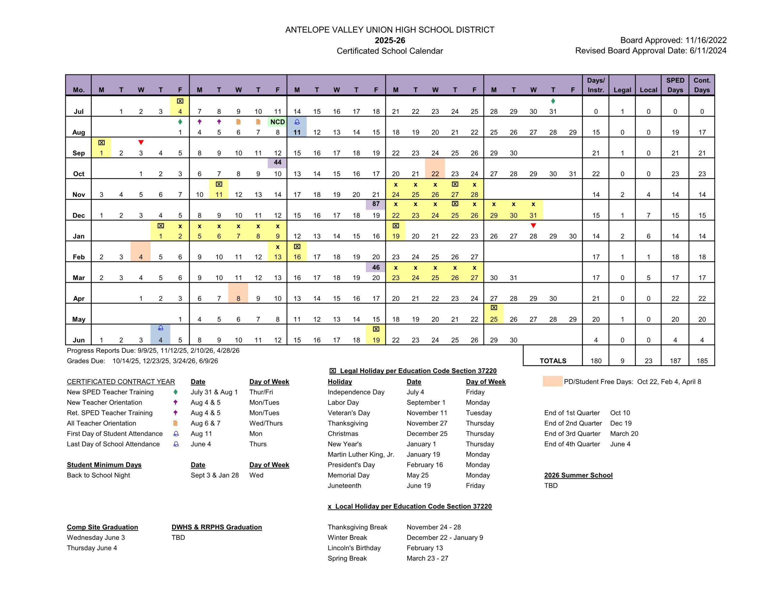 AVUHSD Antelope Valley Union High School District Calendar (2025-2026)