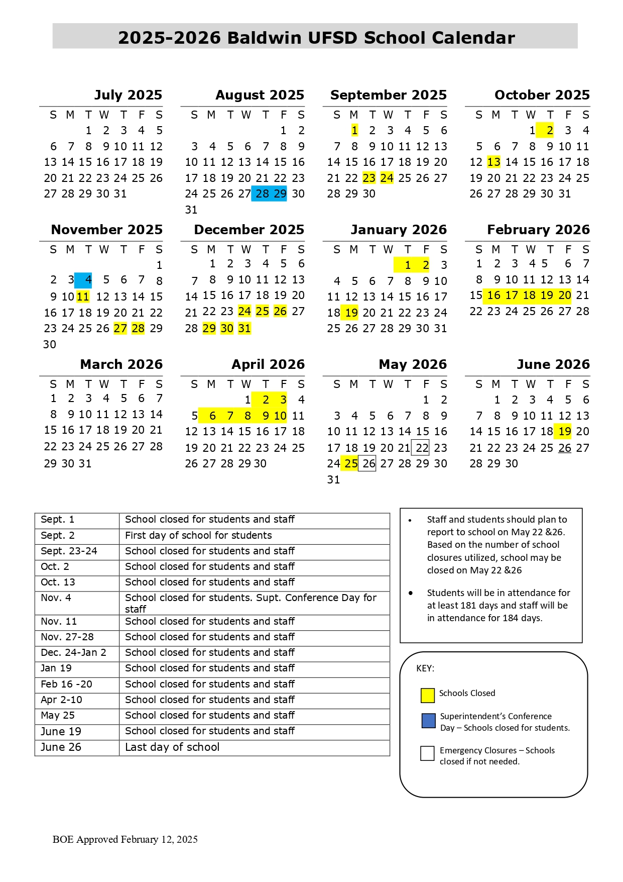 Baldwin UFSD School Calendar 2025-2026 FAQs