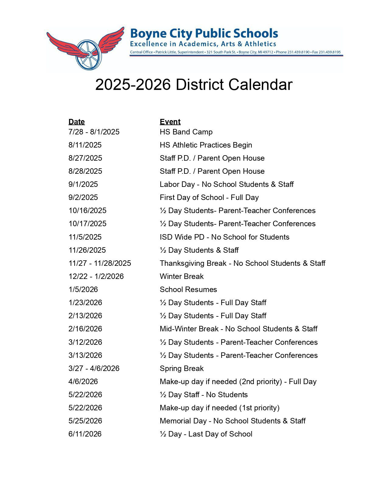 Boyne City Public Schools 2025-2026 Calendar FAQ
