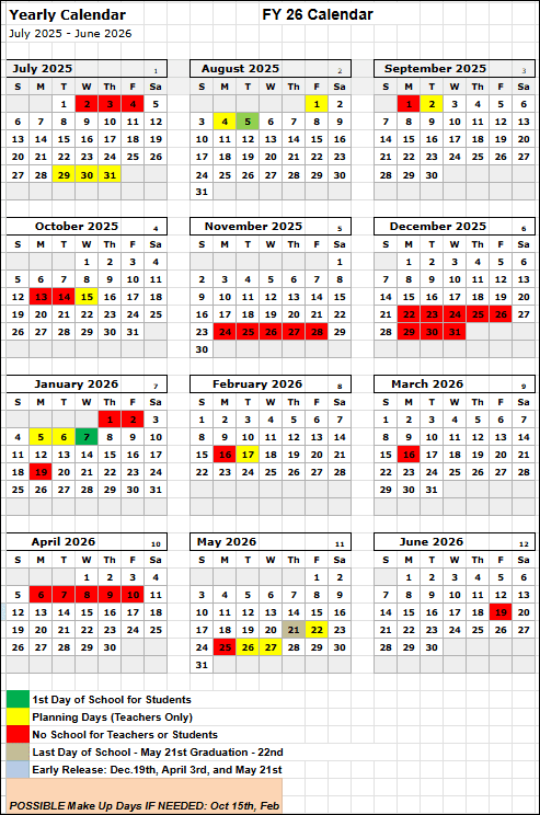Please note that all dates and events are subject to change at the discretion of the school district. For the most