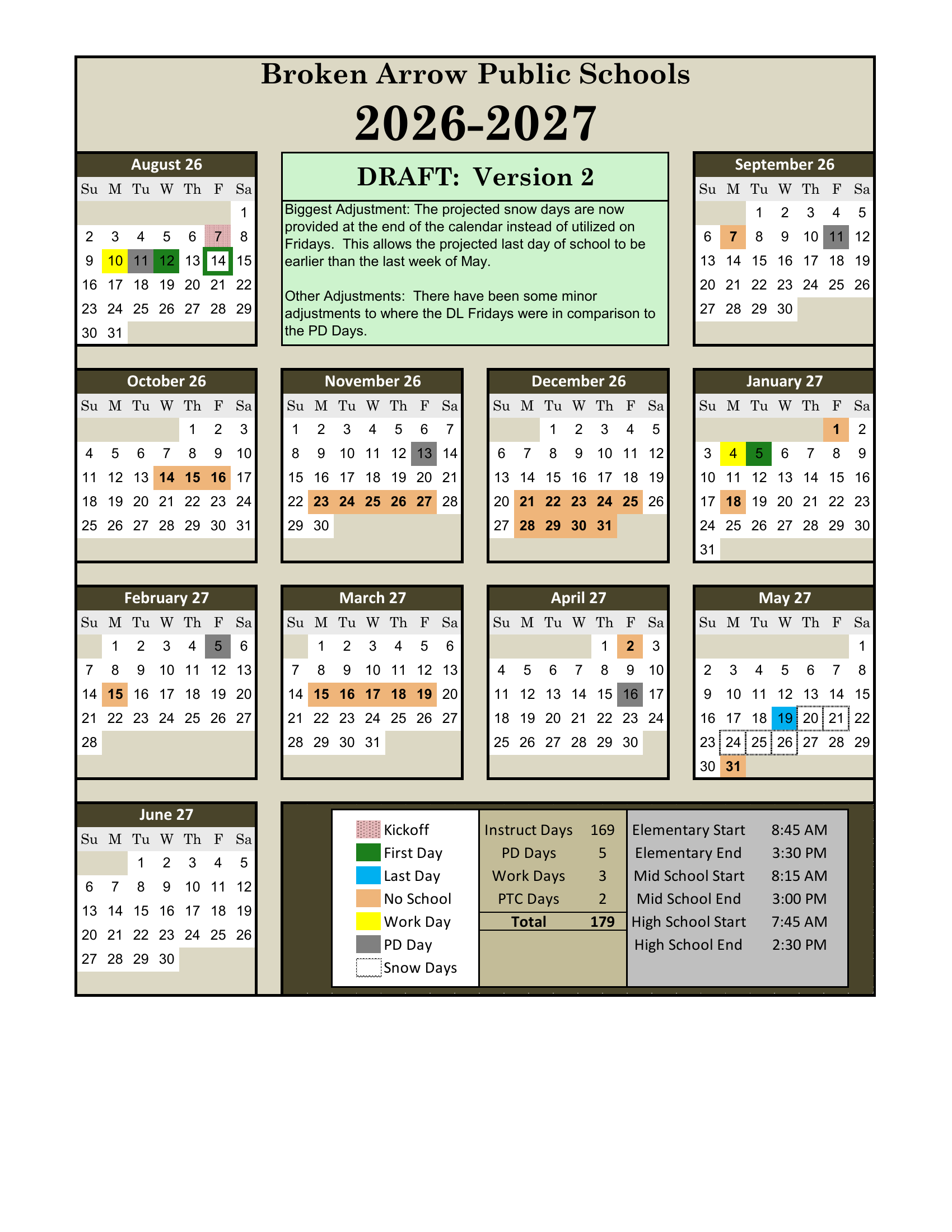 Broken Arrow Public Schools Calendar 2026–2027 FAQs