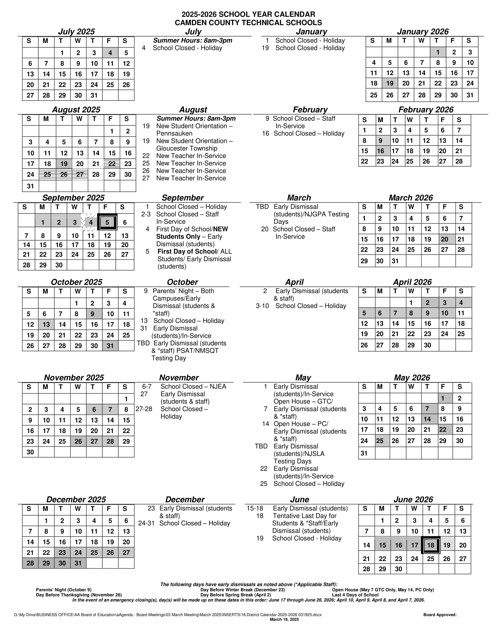Camden County Technical Schools 2025-2026 Calendar FAQs