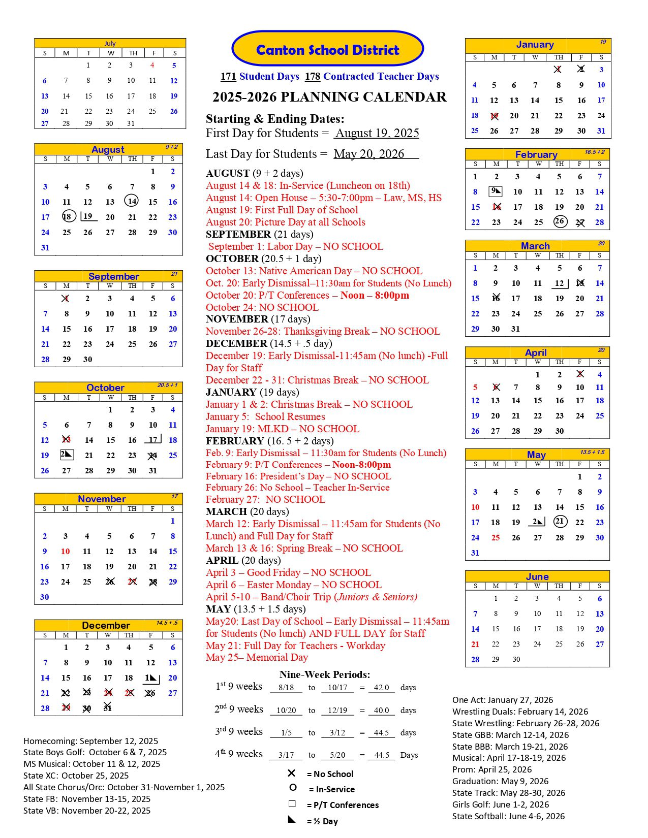 Canton School District Calendar (2025-2026)