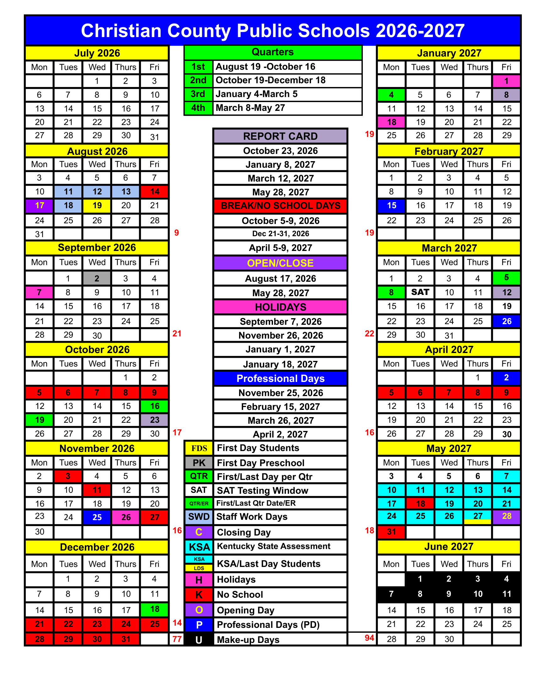 Christian County Public Schools Calendar (2026-2027)