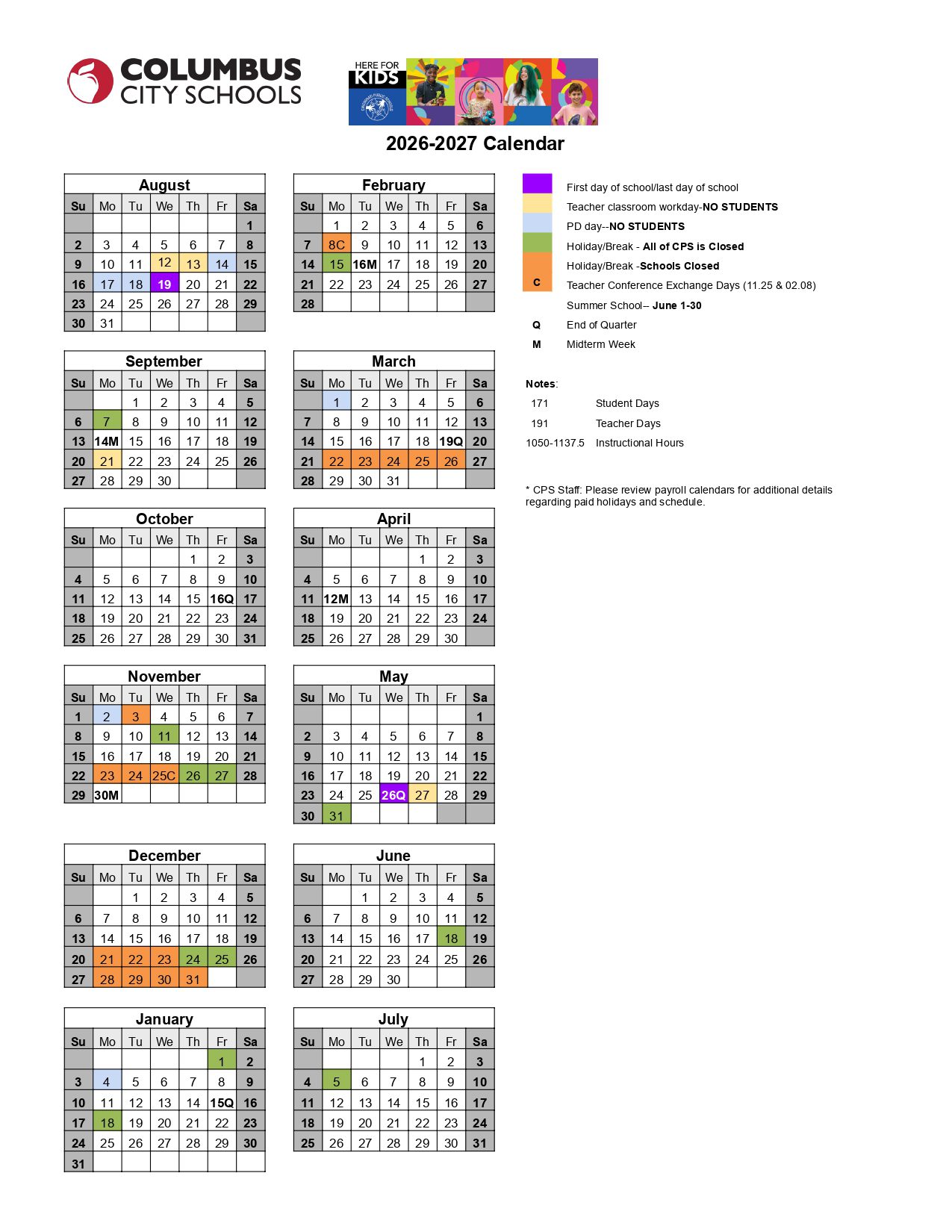 Columbus City Schools Calendar (2026-2027)