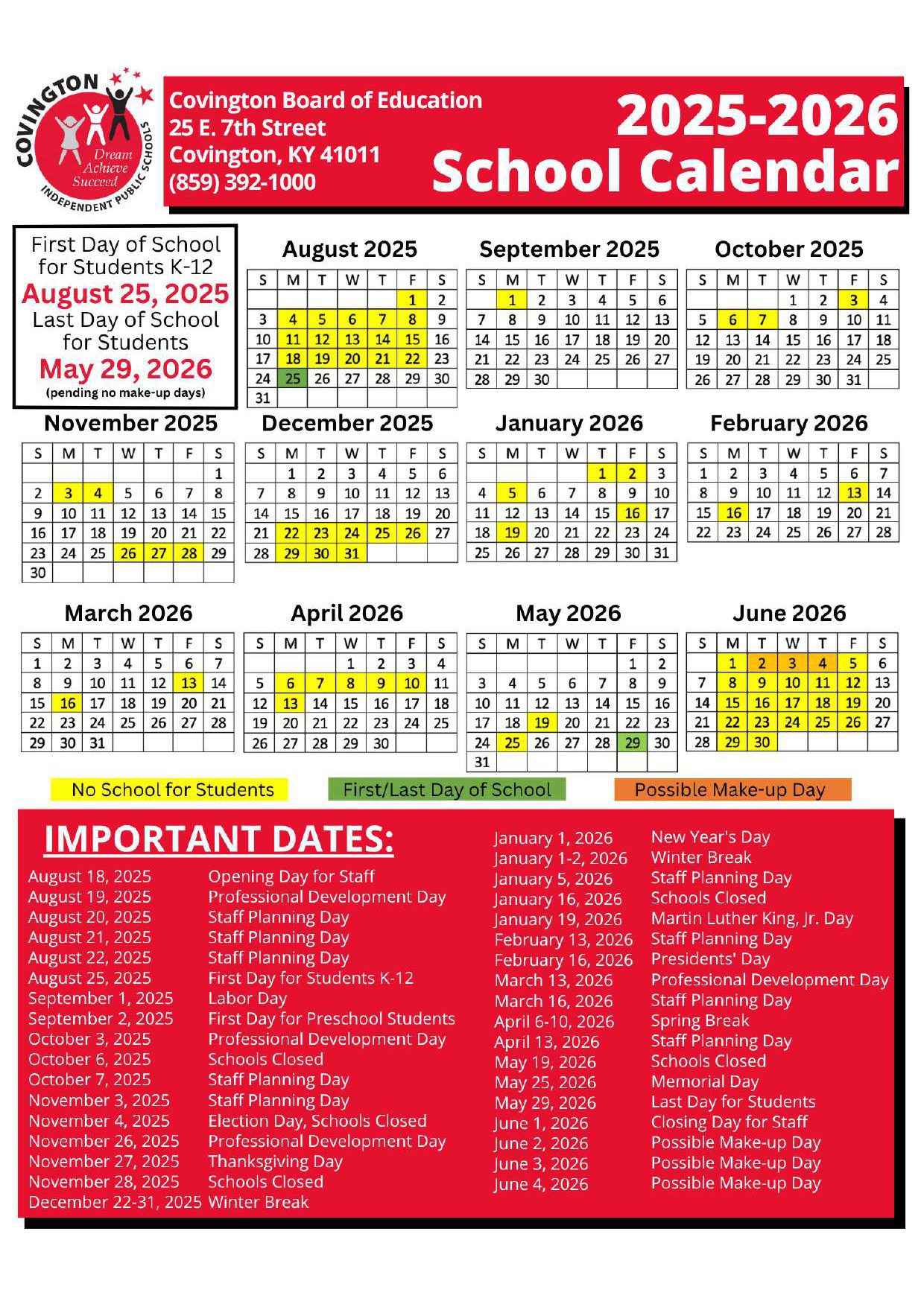 Covington Independent Public Schools Calendar 2025-2026 FAQ