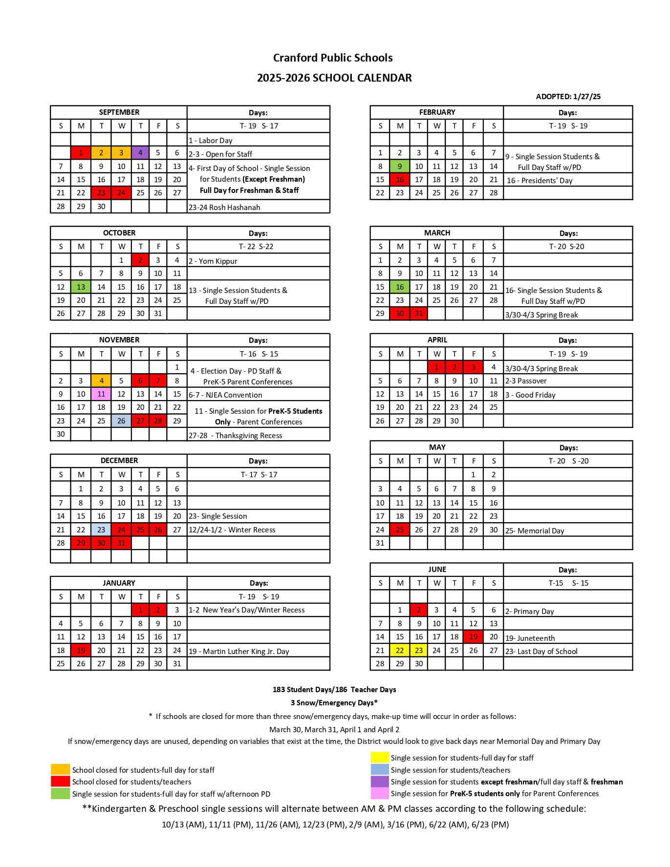 Cranford Public Schools 2025-2026 Calendar FAQs