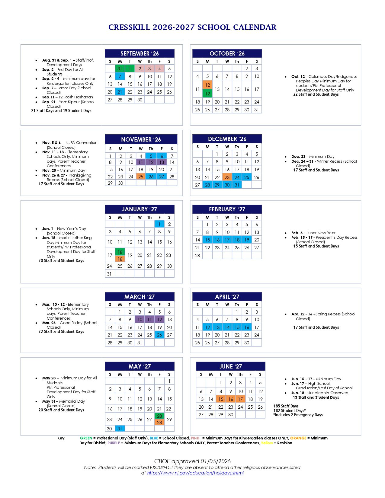CRESSKILL Calendar (2026-2027)