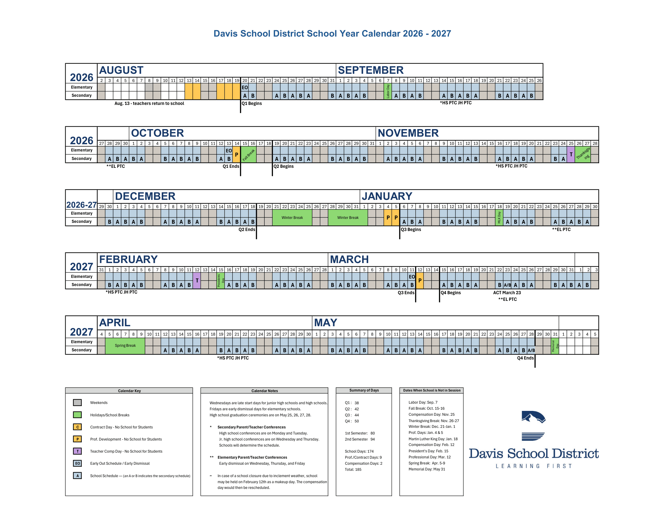 Davis School District Calendar (2026-2027)