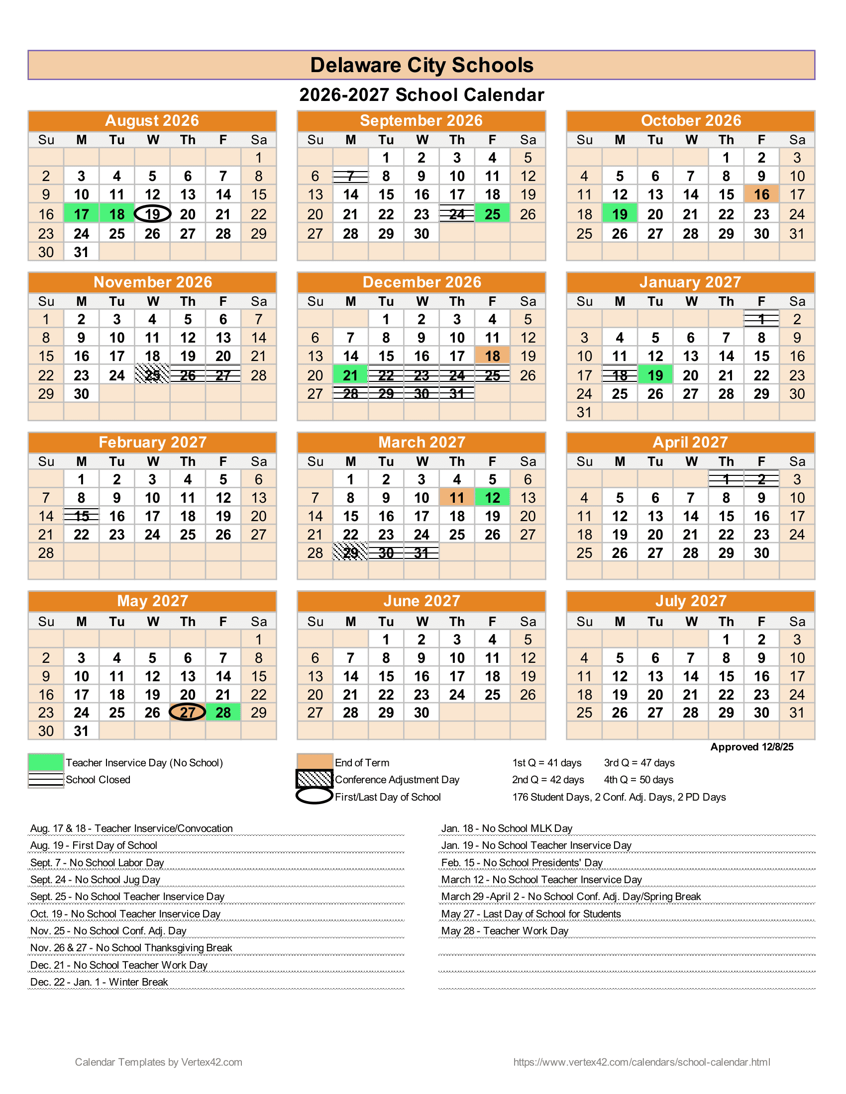 Dates are sourced from the official Delaware City Schools District Calendar 26-27 Updates website. Dates may change at the discretion of the district. Always verify with the official school website for the latest updates.