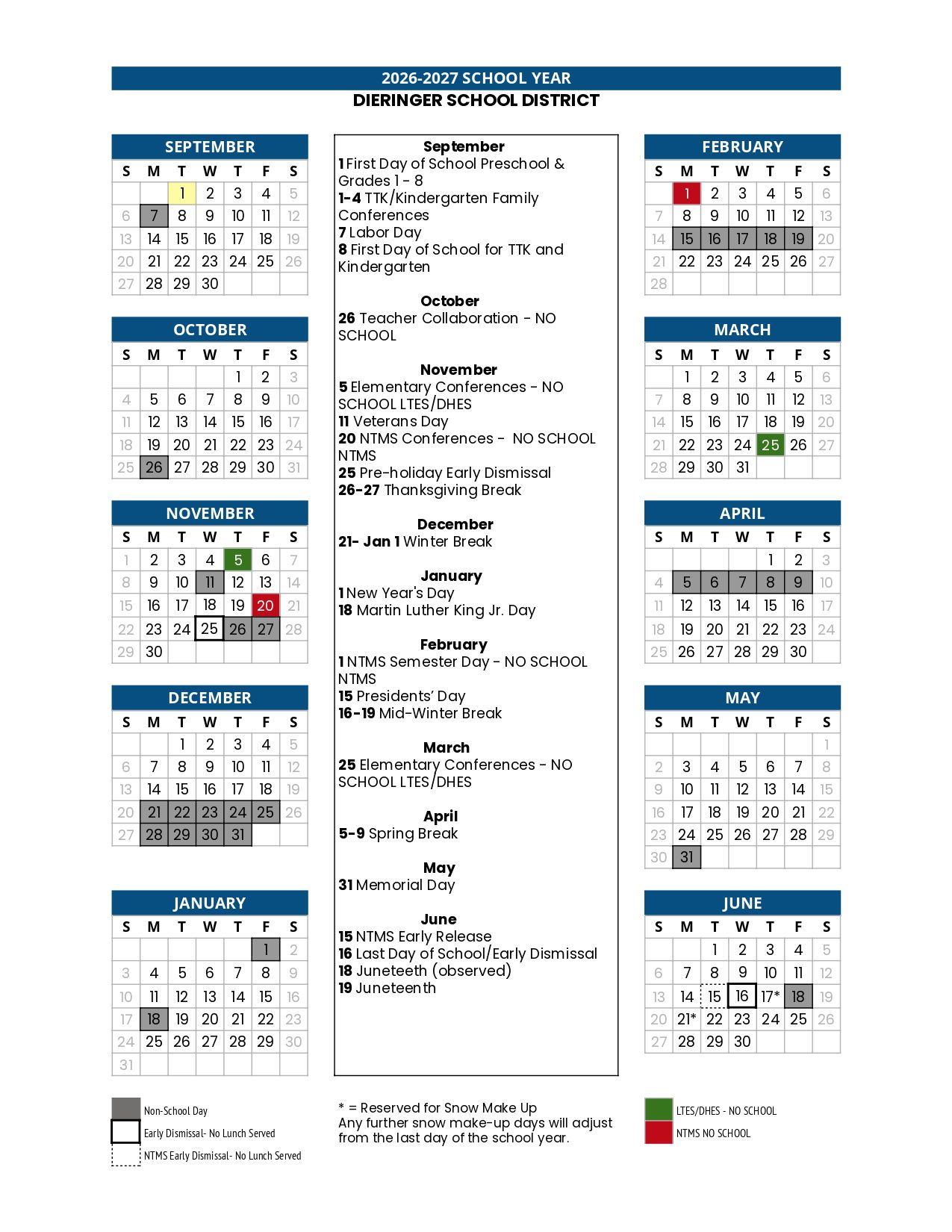 DIERINGER SCHOOL DISTRICT Calendar (2026-2027)