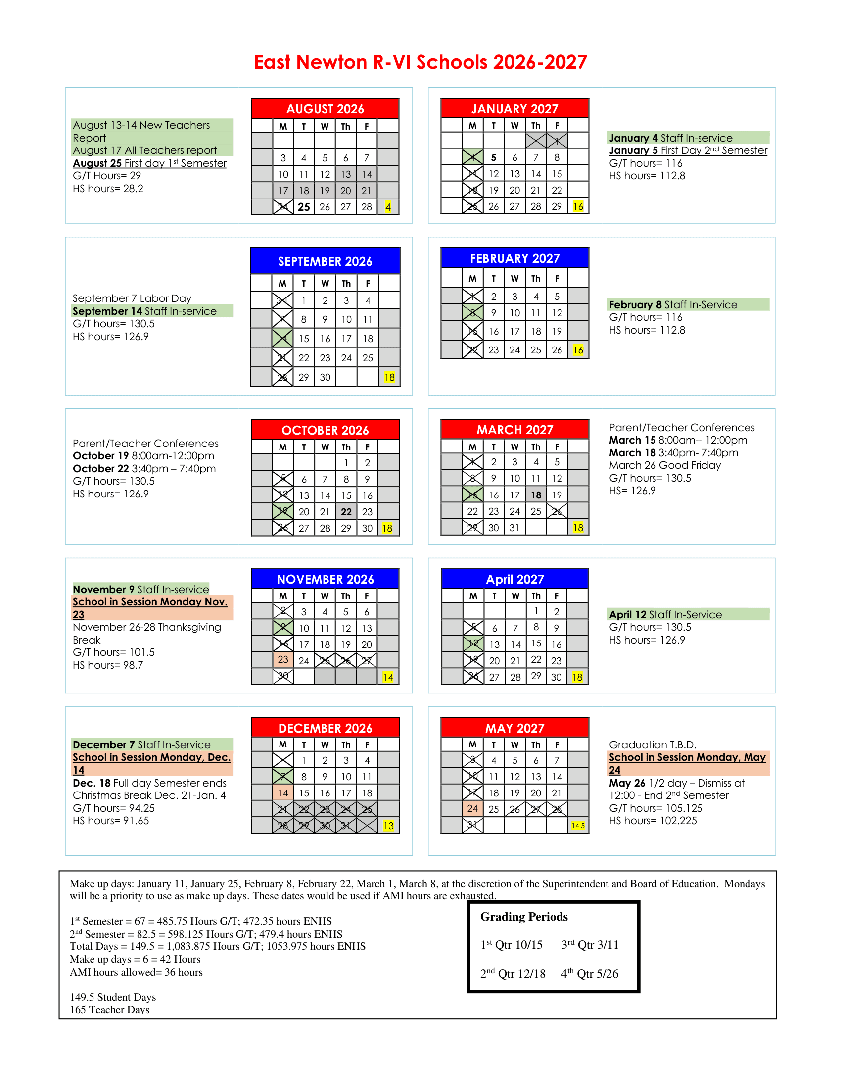 East Newton R-VI Schools Calendar (2026-2027)
