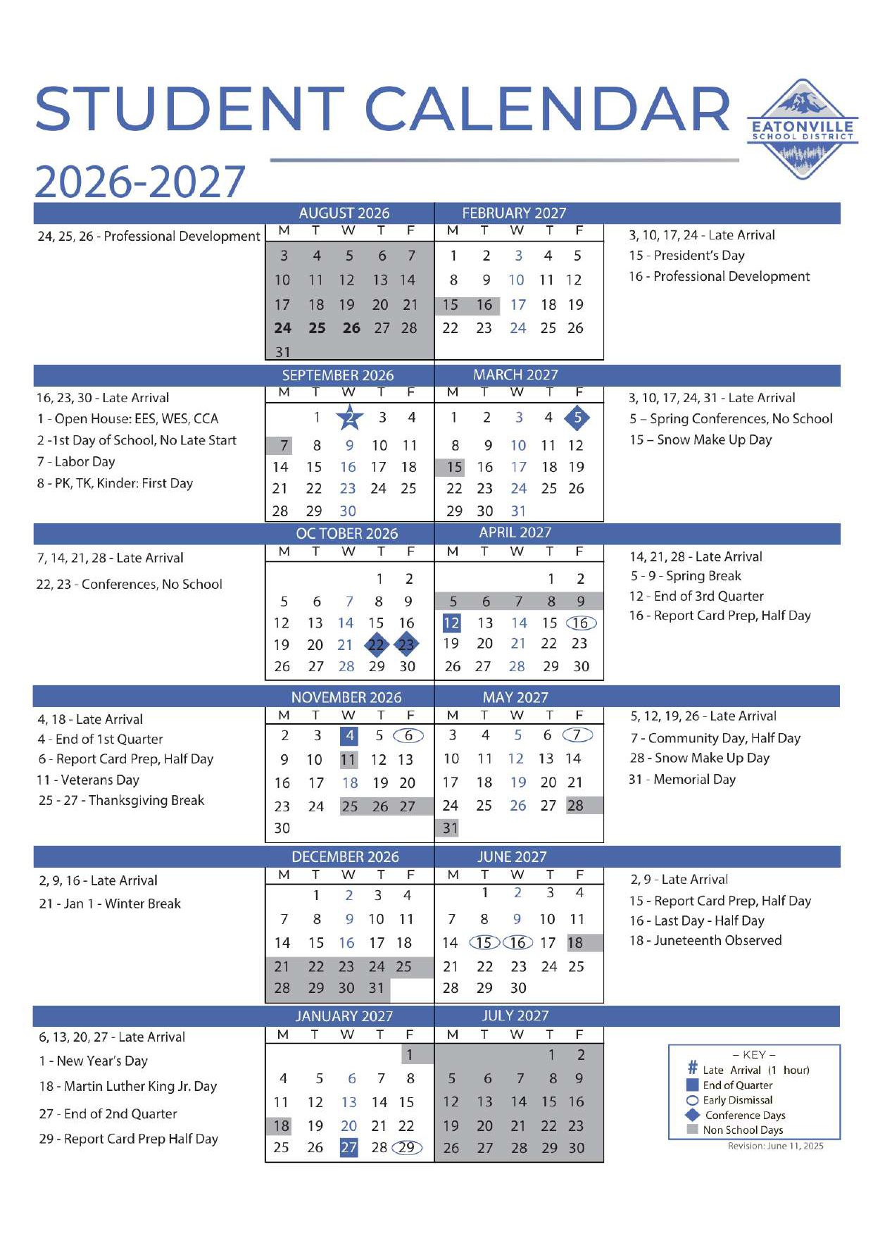EATONVILLE SCHOOL DISTRICT 2026-2027 Calendar FAQ