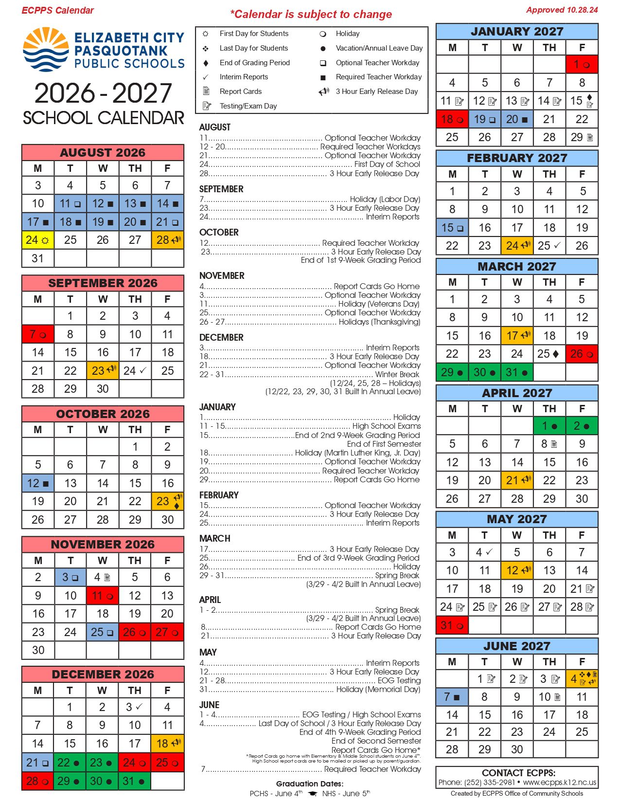 Dates are sourced from the official ELIZABETH CITY PASQUOTANK PUBLIC Calendar 26-27 [PDF] website. Dates may change at the discretion of the district. Always verify with the official school website for the latest updates.