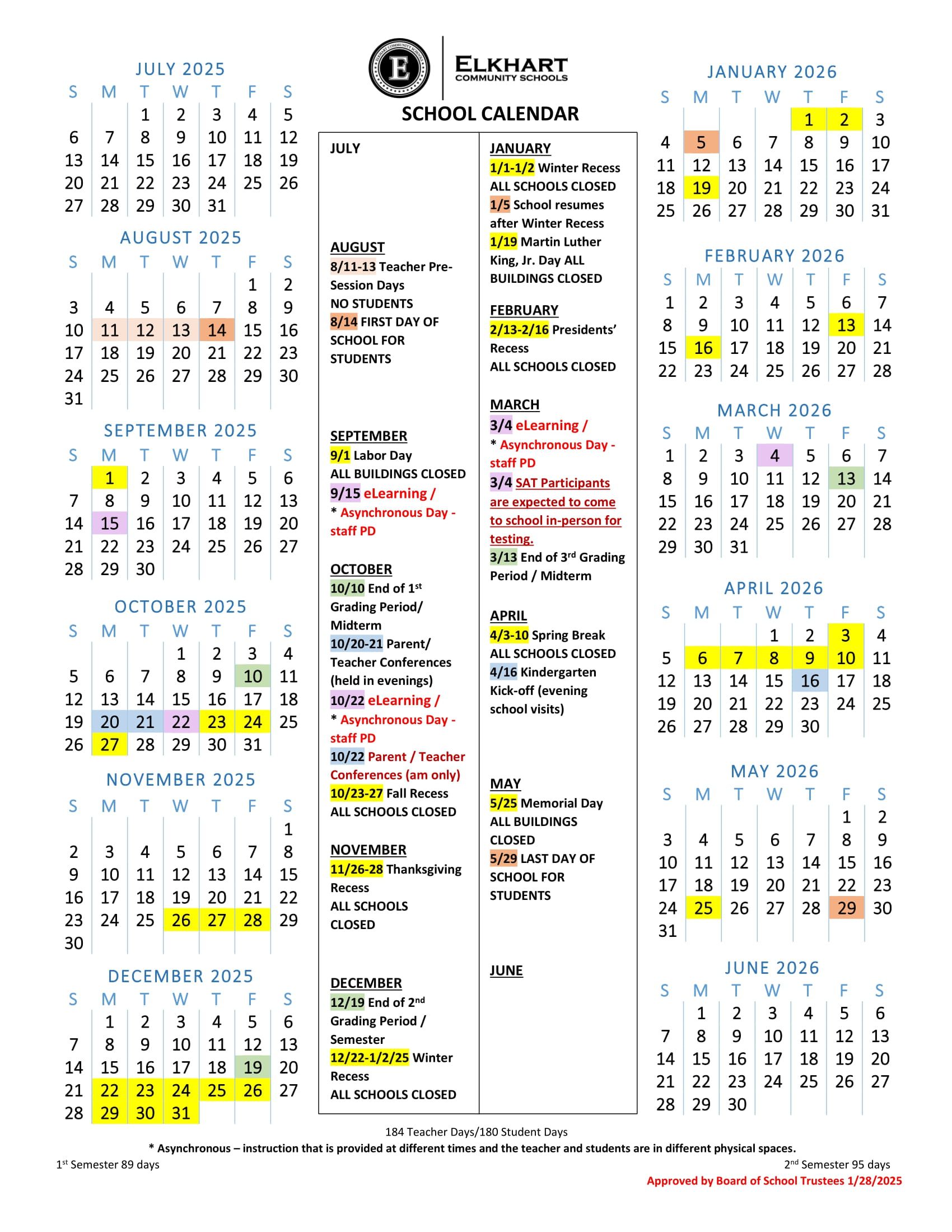 Elkhart Community Schools Calendar FAQ 2025-2026