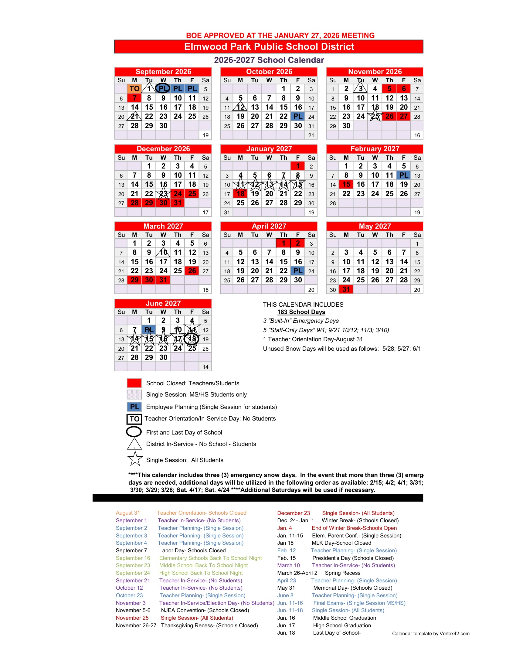 The Printable school calendar provided on this page is taken from the official Englewood Public Schools NJ Calendar 26-27 Updates. Please note that all dates and events are subject to change at the discretion of the school district. For the most accurate and updated information, please refer to the official district website or contact the school helpline.