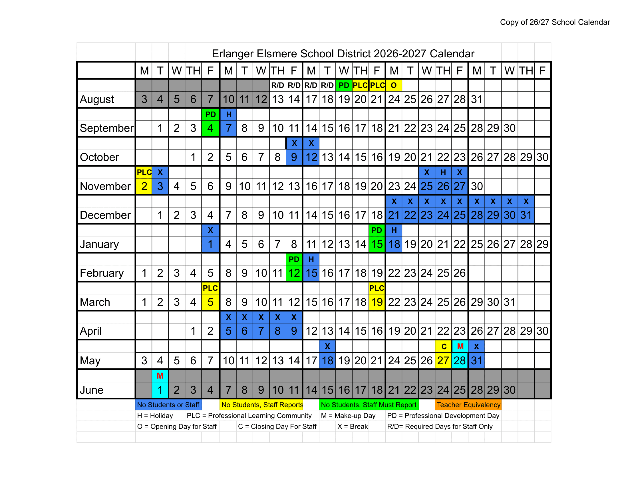 The Printable school calendar provided on this page is taken from the official Erlanger Elsmere School District Calendar 26-27 Updates. Please note that all dates and events are subject to change at the discretion of the school district. For the most accurate and updated information, please refer to the official district website or contact the school helpline.