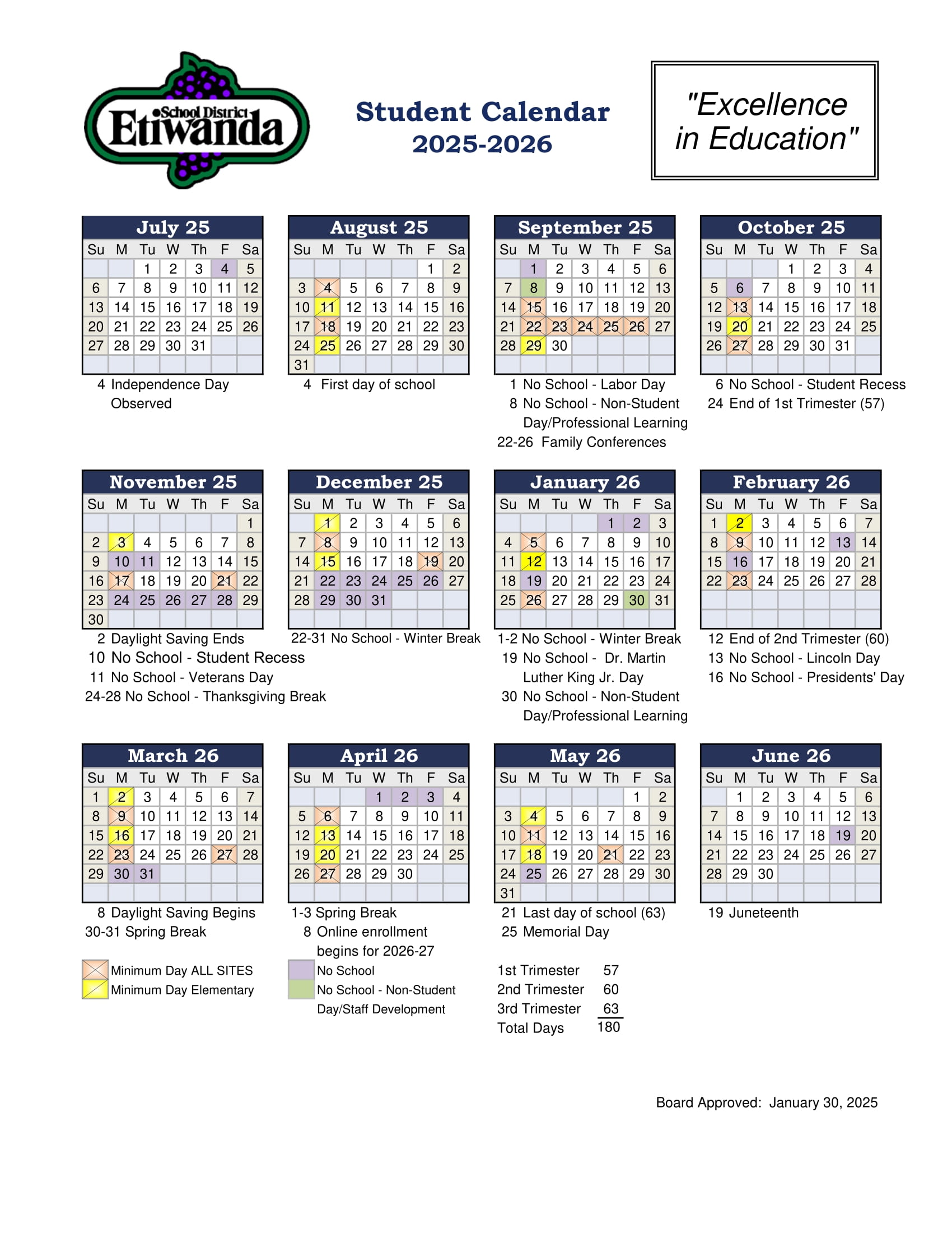 Etiwanda School District Calendar (2025-2026)