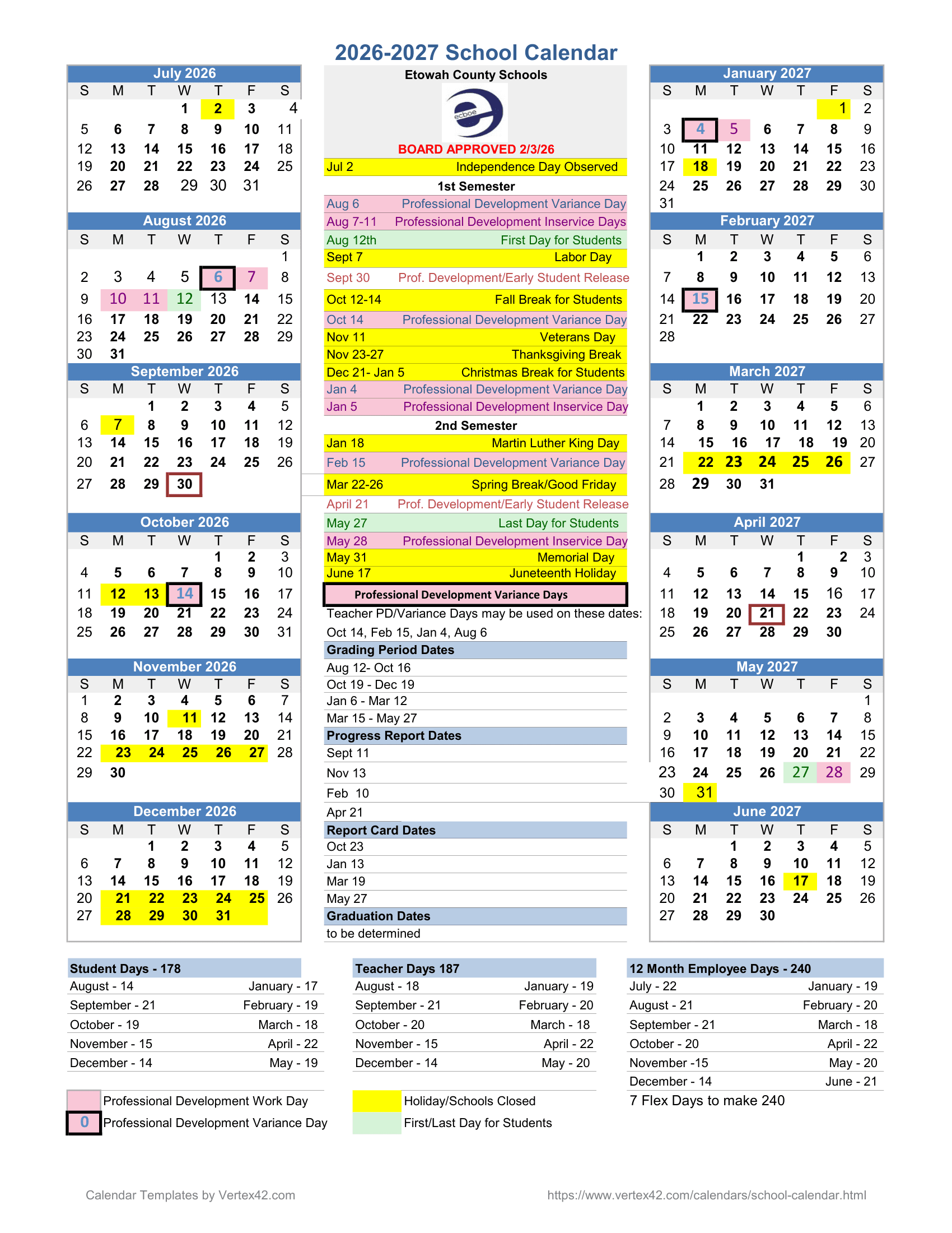 Dates are sourced from the official Etowah County Schools al 26-27 Revised [PDF] website. Dates may change at the discretion of the district. Always verify with the official school website for the latest updates.