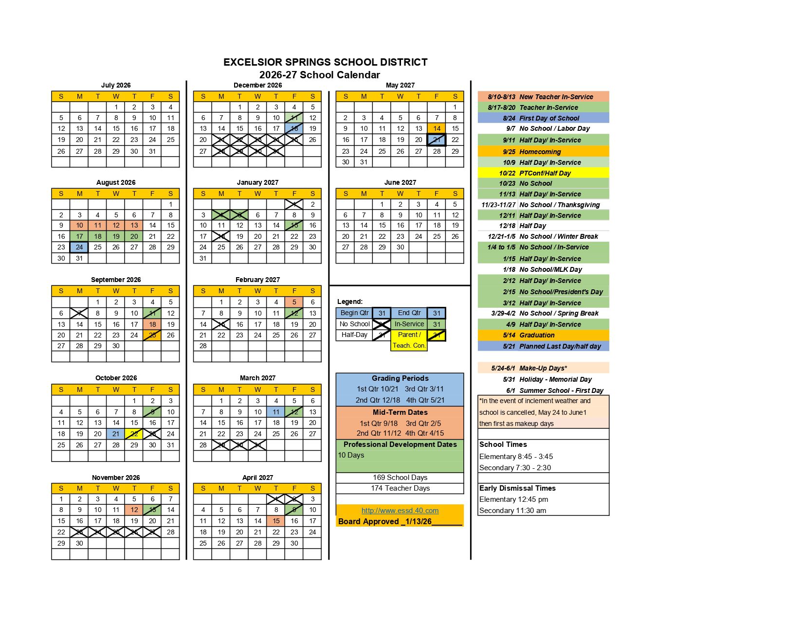 EXCELSIOR SPRINGS SCHOOL DISTRICT 2026-27 School Calendar FAQ