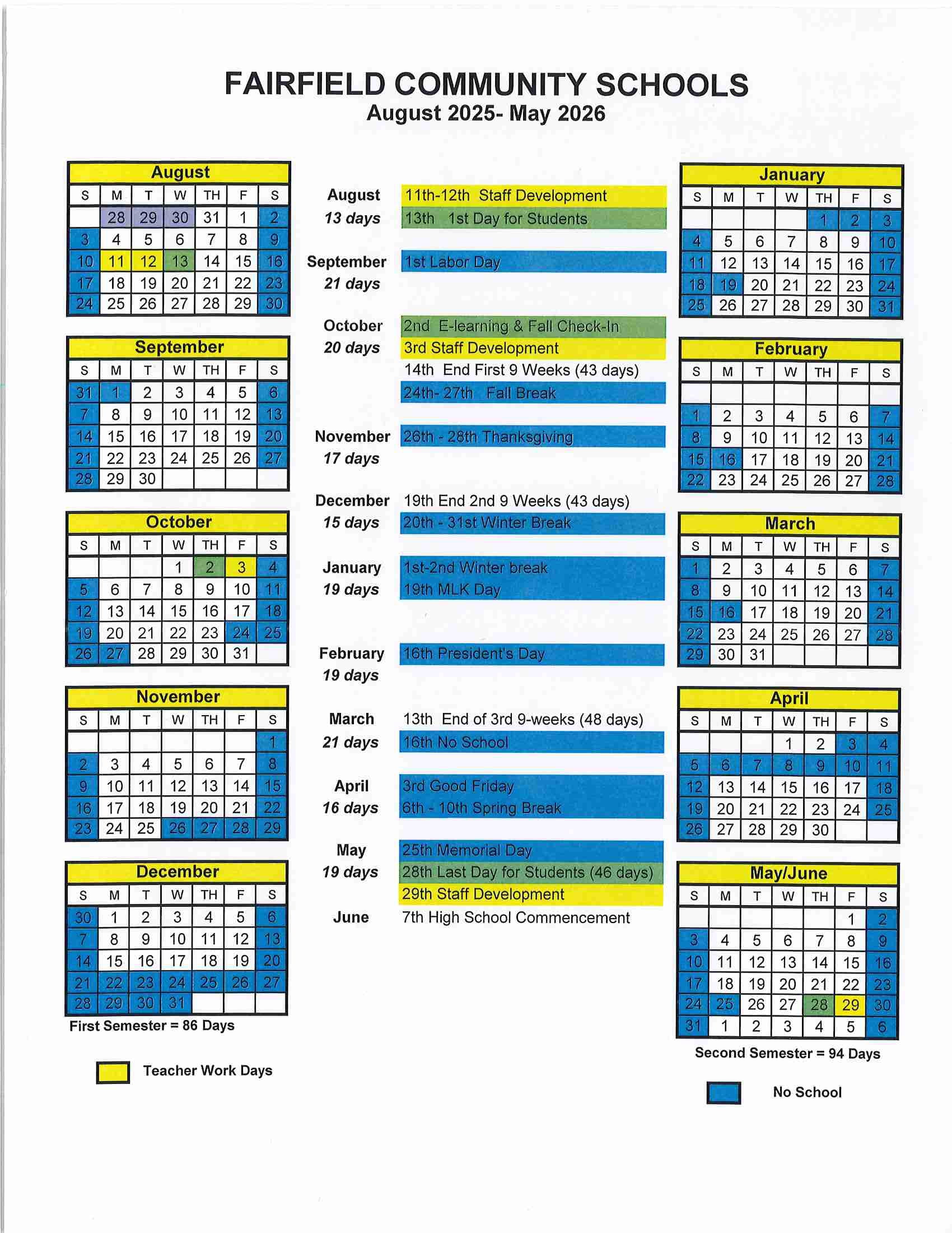 Fairfield Community Schools Calendar 2025-2026 - Frequently Asked Questions