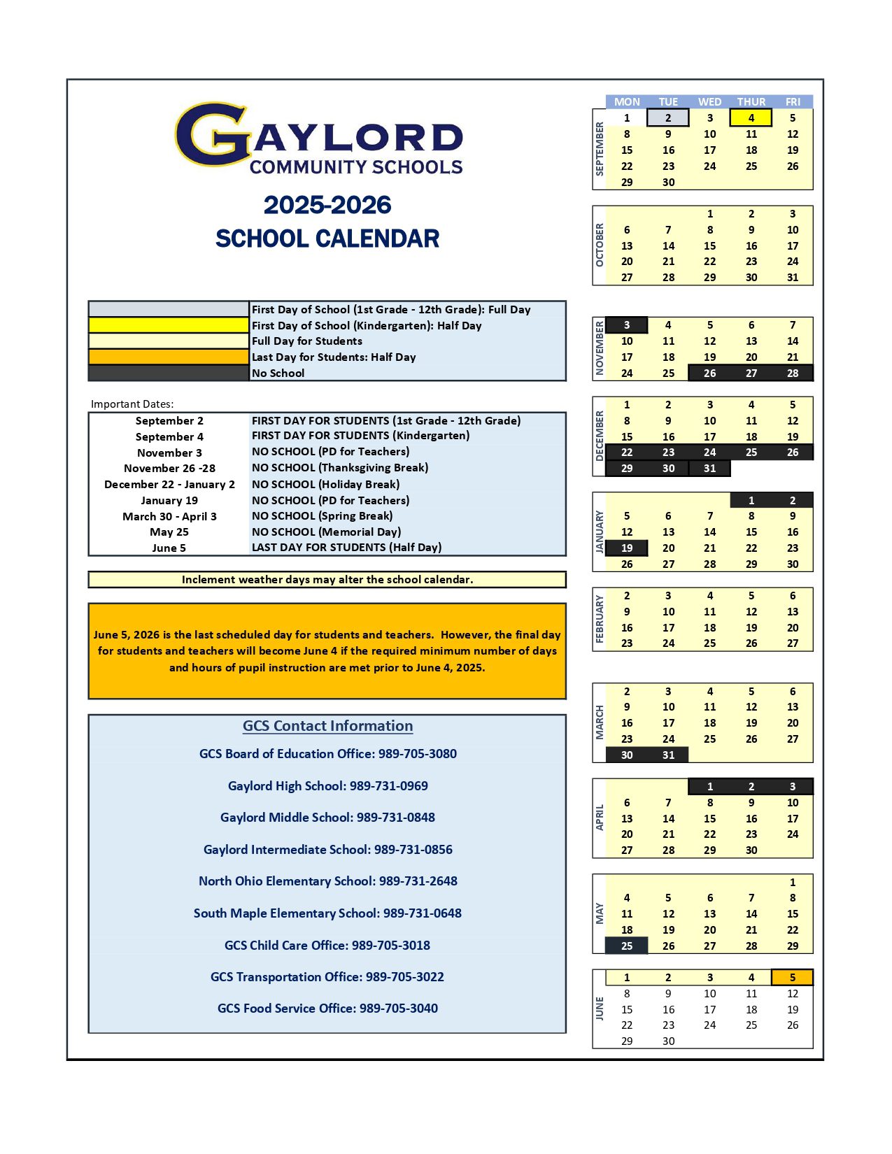 Gaylord Community Schools 2025-2026 Calendar FAQ