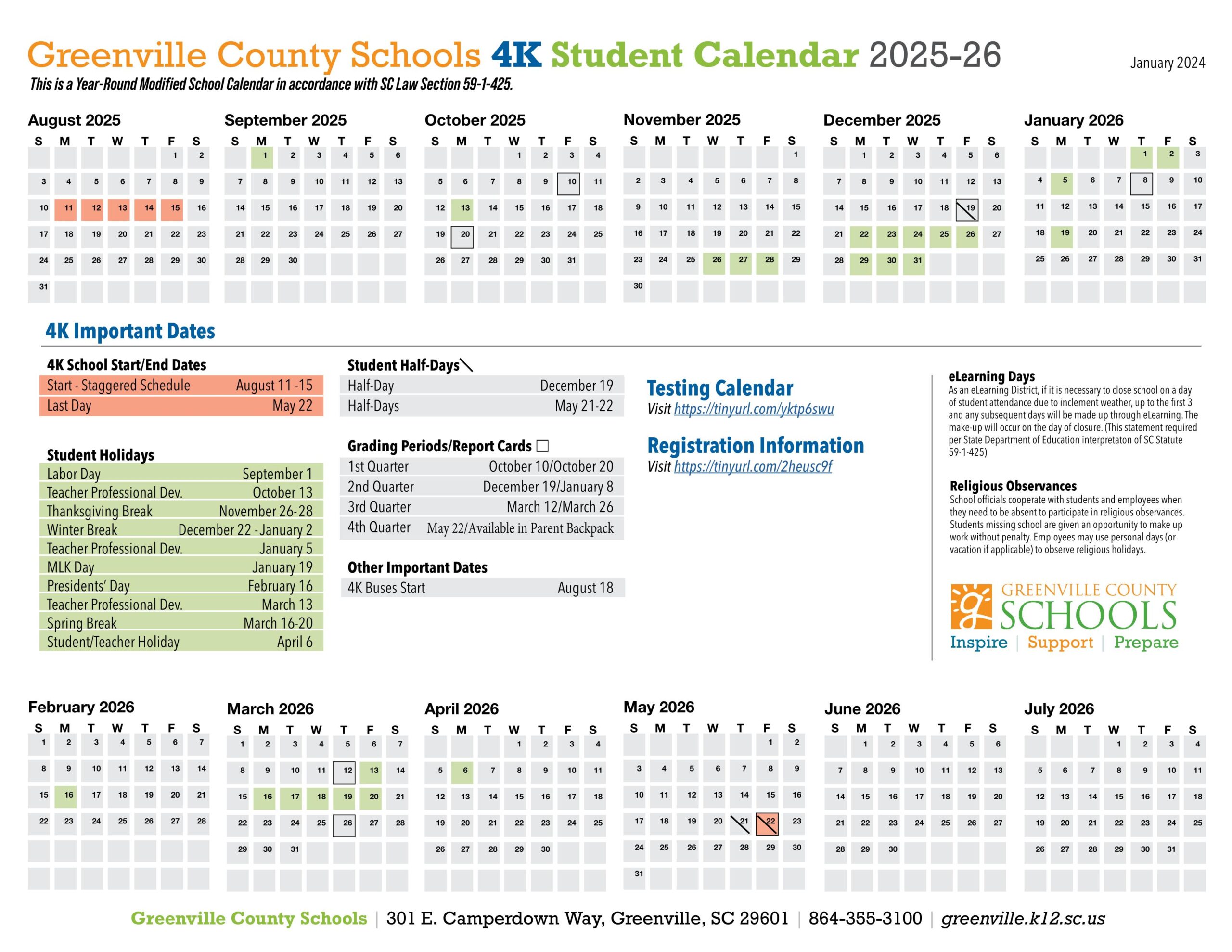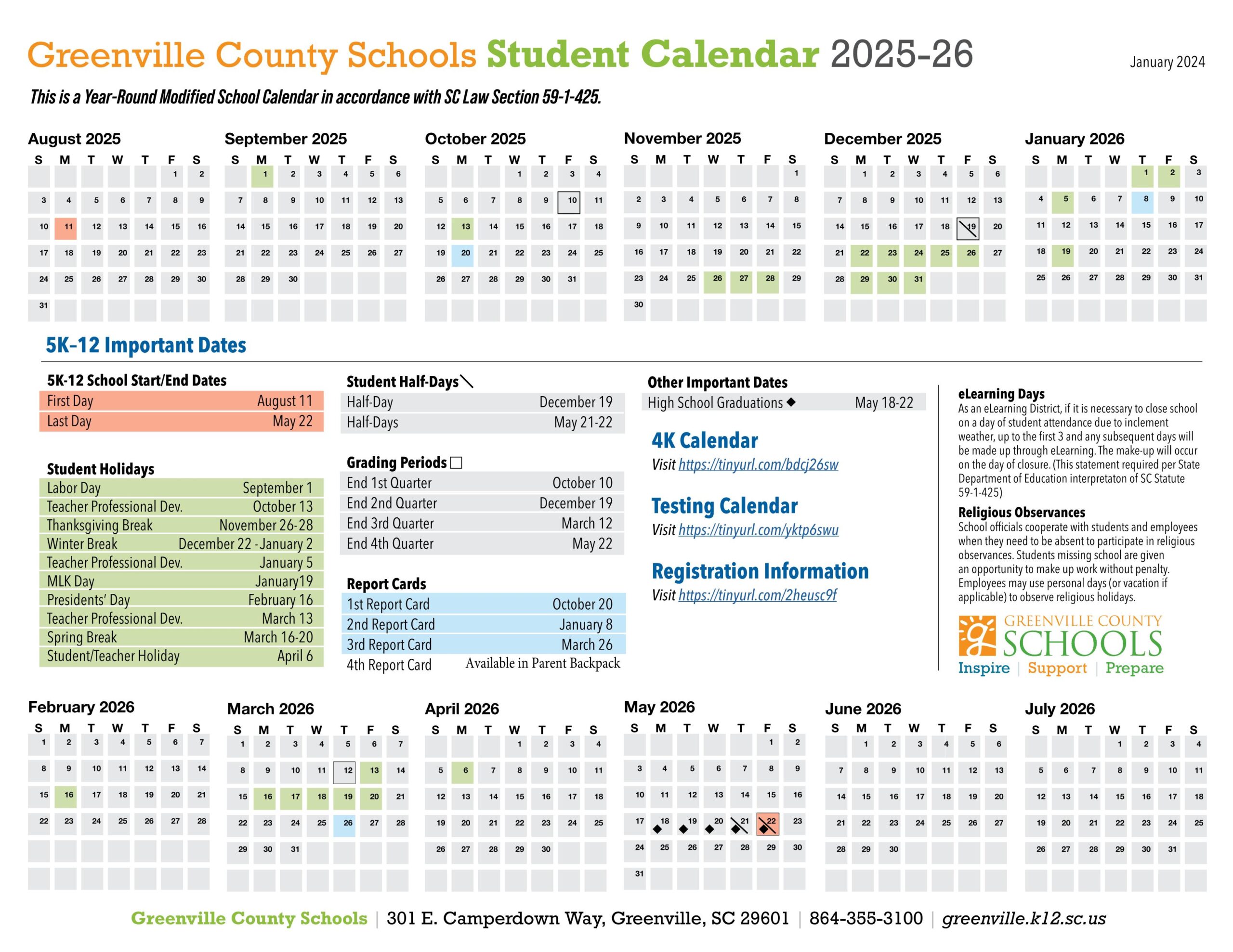 Greenville County Schools Calendar (2025-2026)