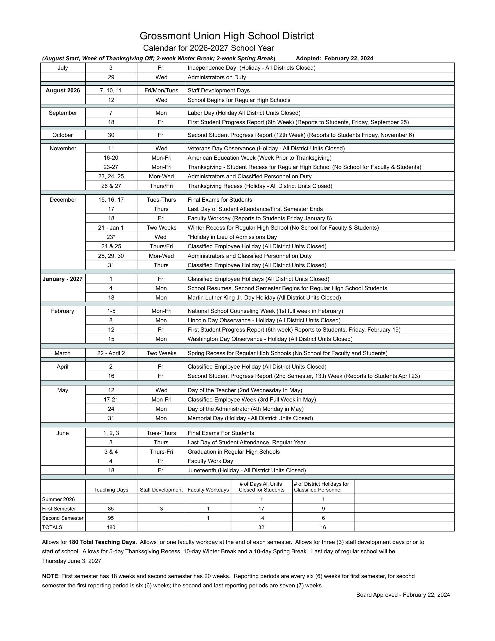 Grossmont Union High School District 26-27 Calendar [PDF]