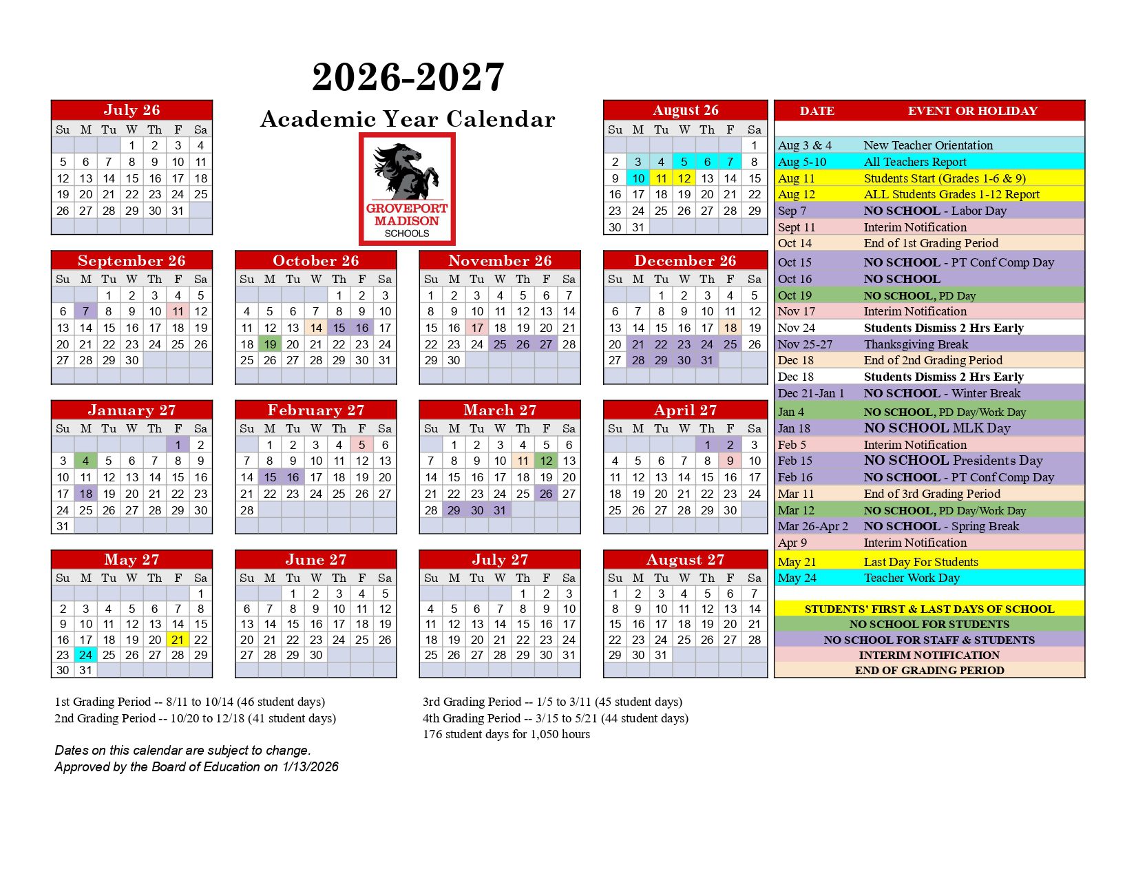 Dates are sourced from the official Groveport Madison Schools Calendar 26-27 Updates website. Dates may change at the discretion of the district. Always verify with the official school website for the latest updates.