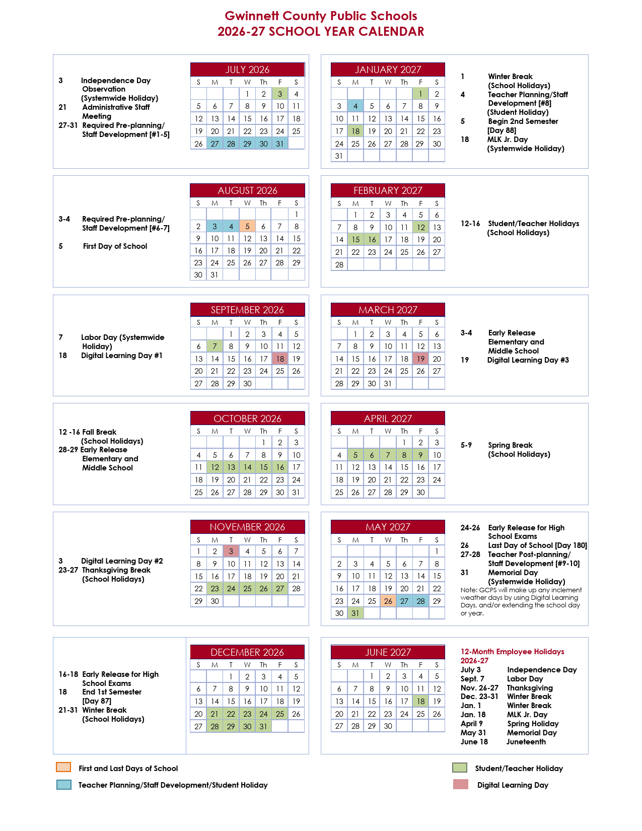 Gwinnett County Public Schools Calendar (2026-2027)