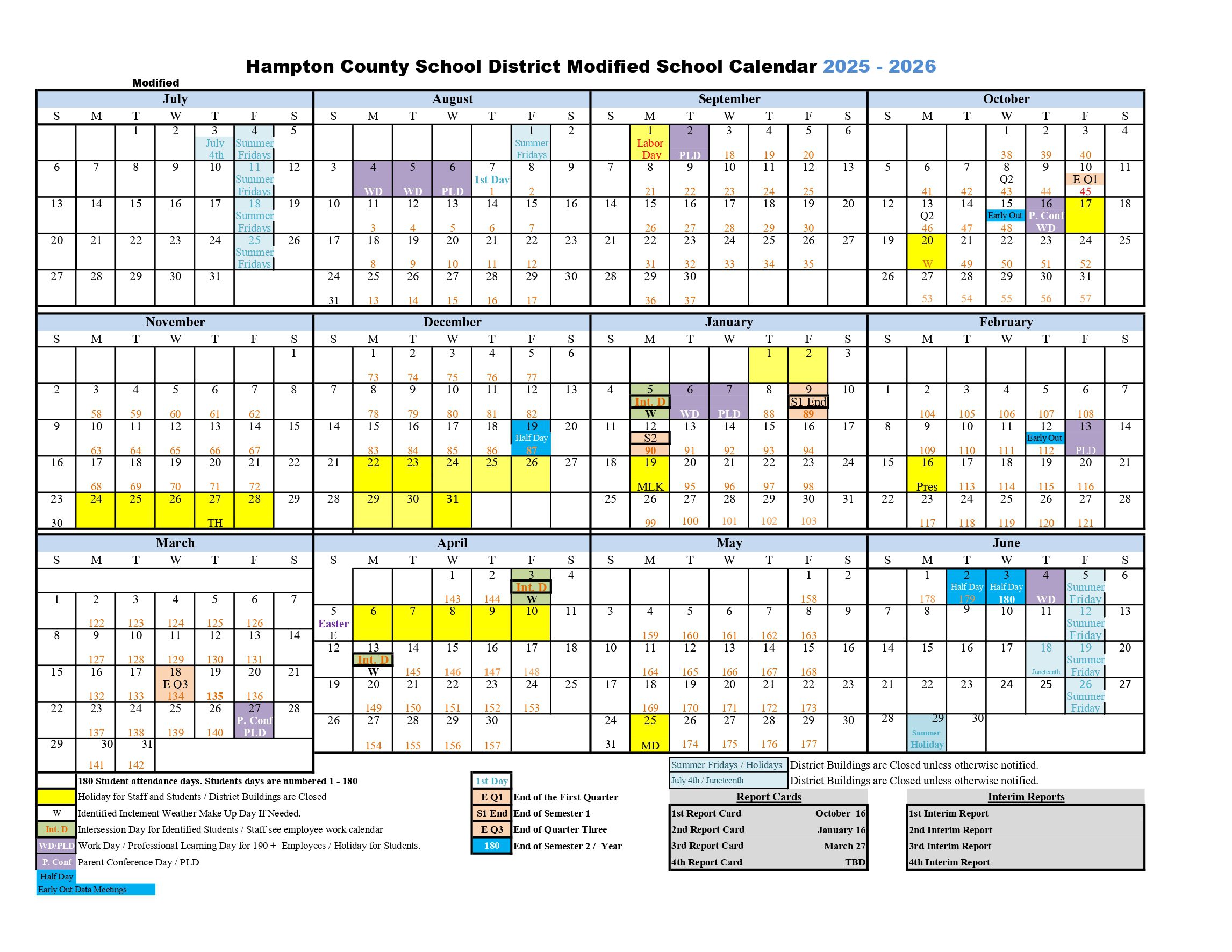 Hampton County School District Calendar (2025-2026)