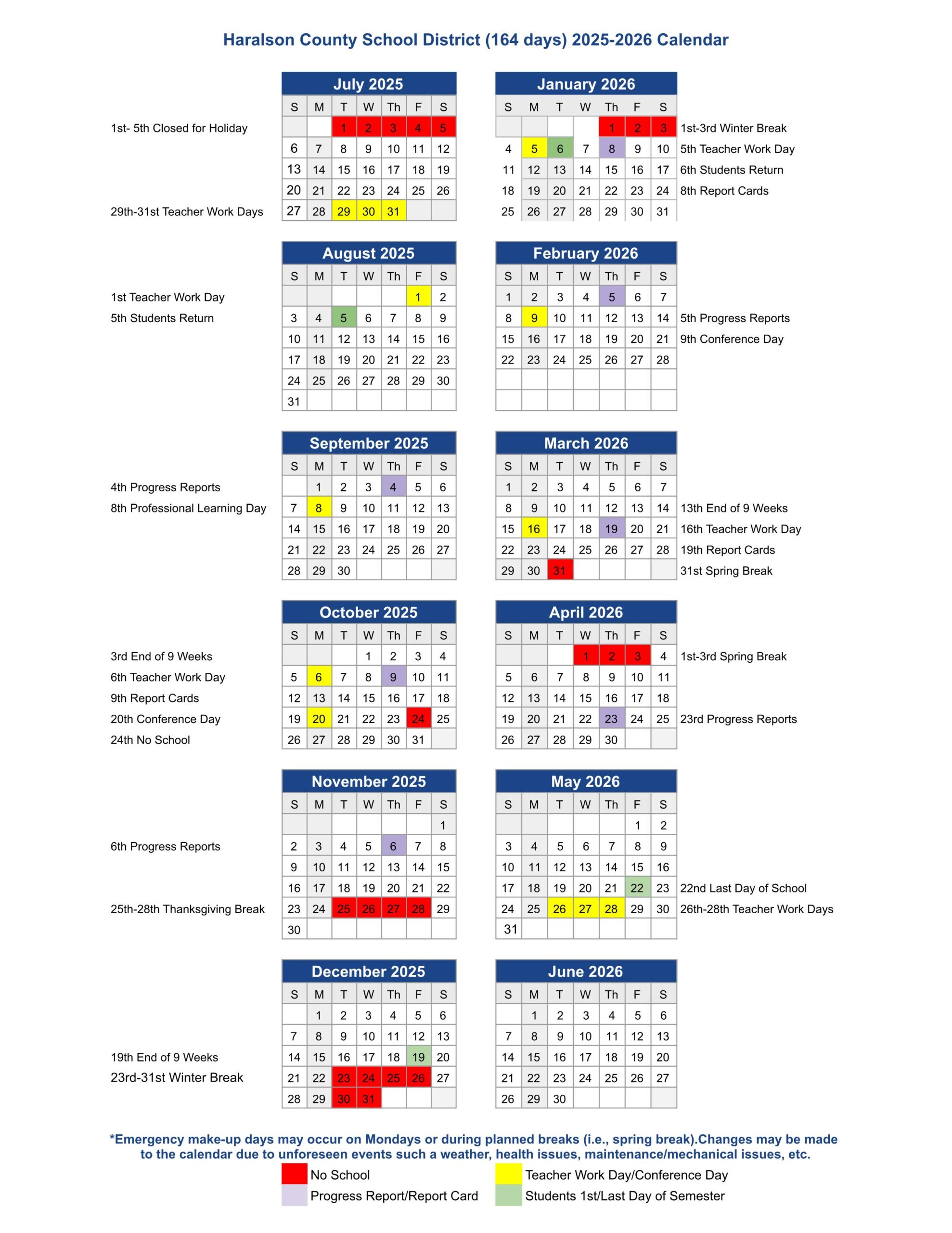 The school calendar provided on this page is taken from the official Haralson County GA School District website. Please note that all dates and events are subject to change at the discretion of the school district. For the most accurate and updated information, please refer to the official district website or contact the school helpline.