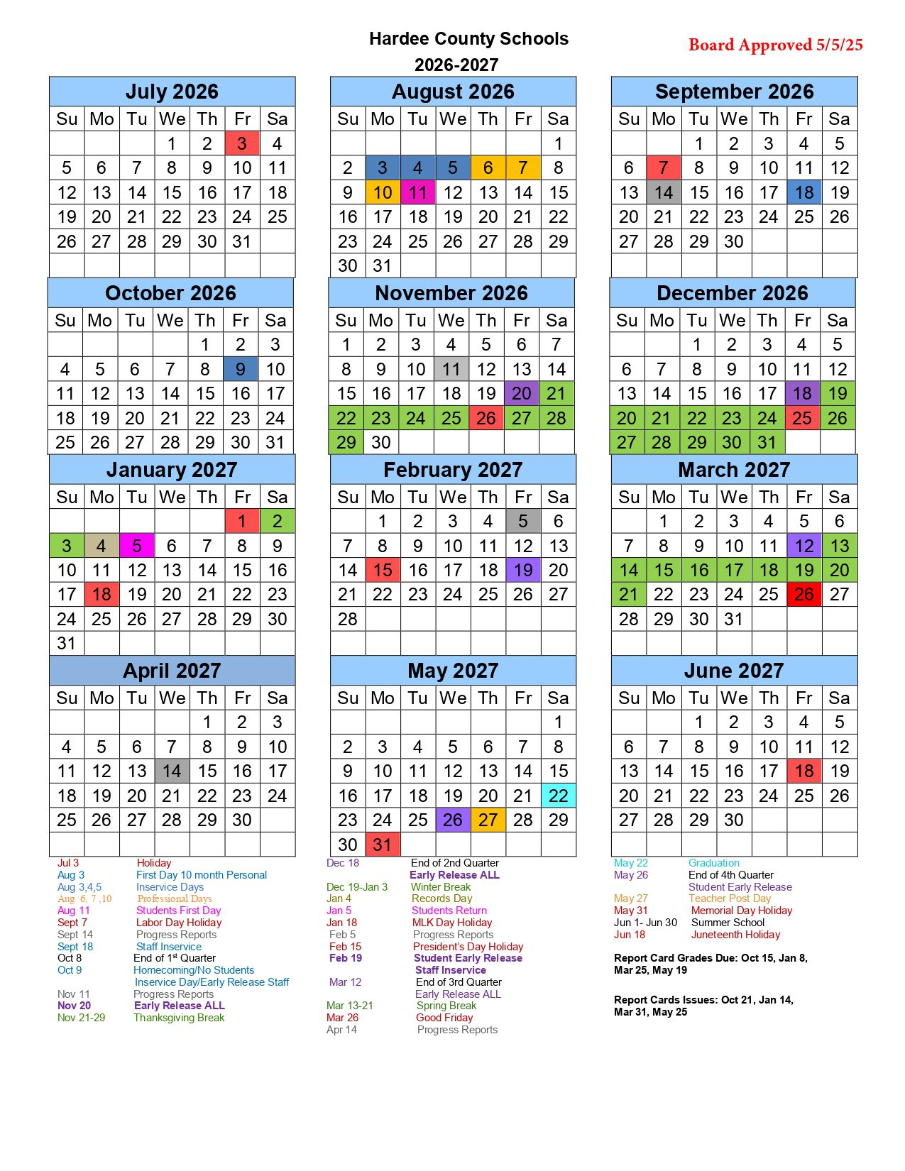 Hardee County Schools Calendar (2026-2027)