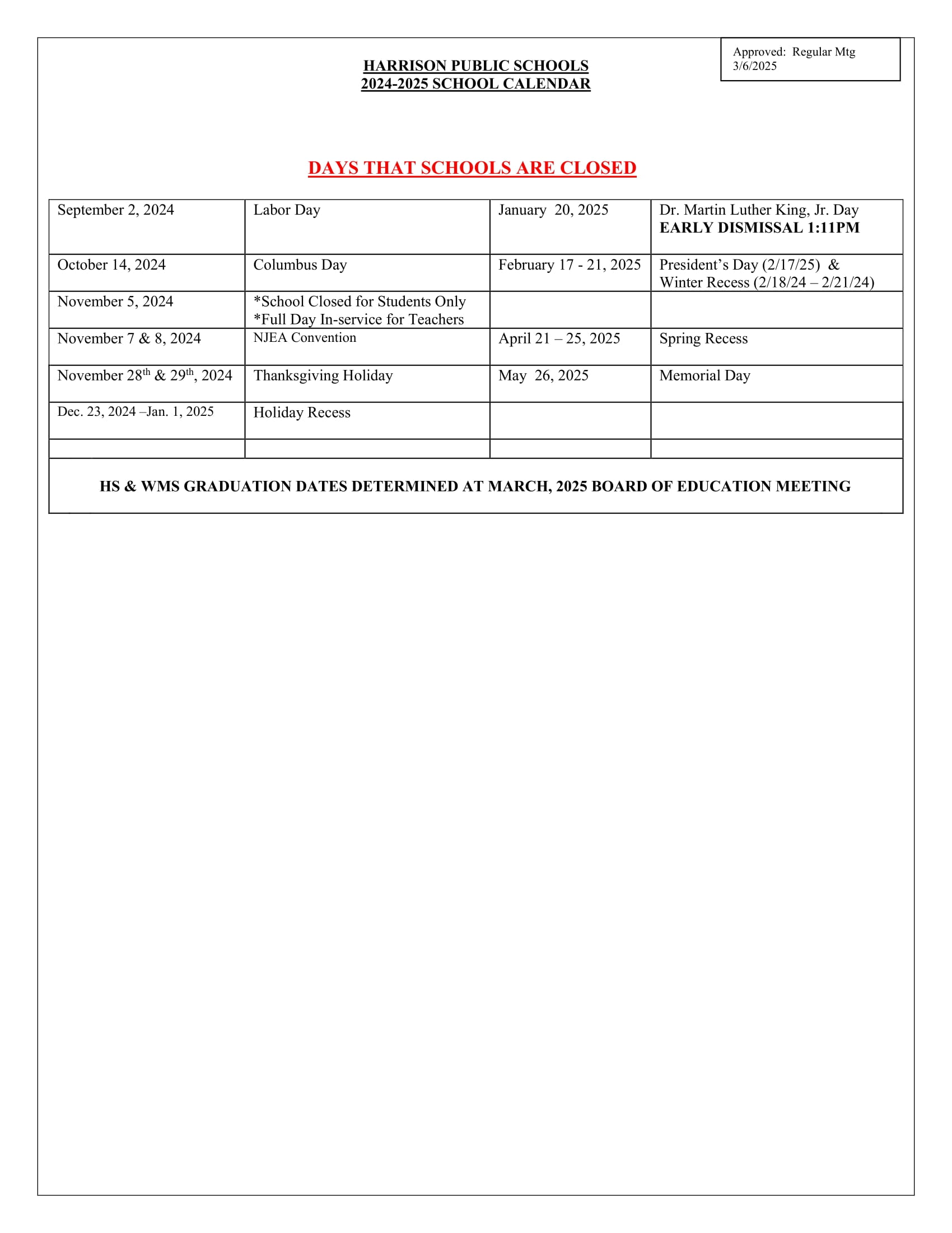 HARRISON PUBLIC SCHOOLS Calendar (2024-2025)