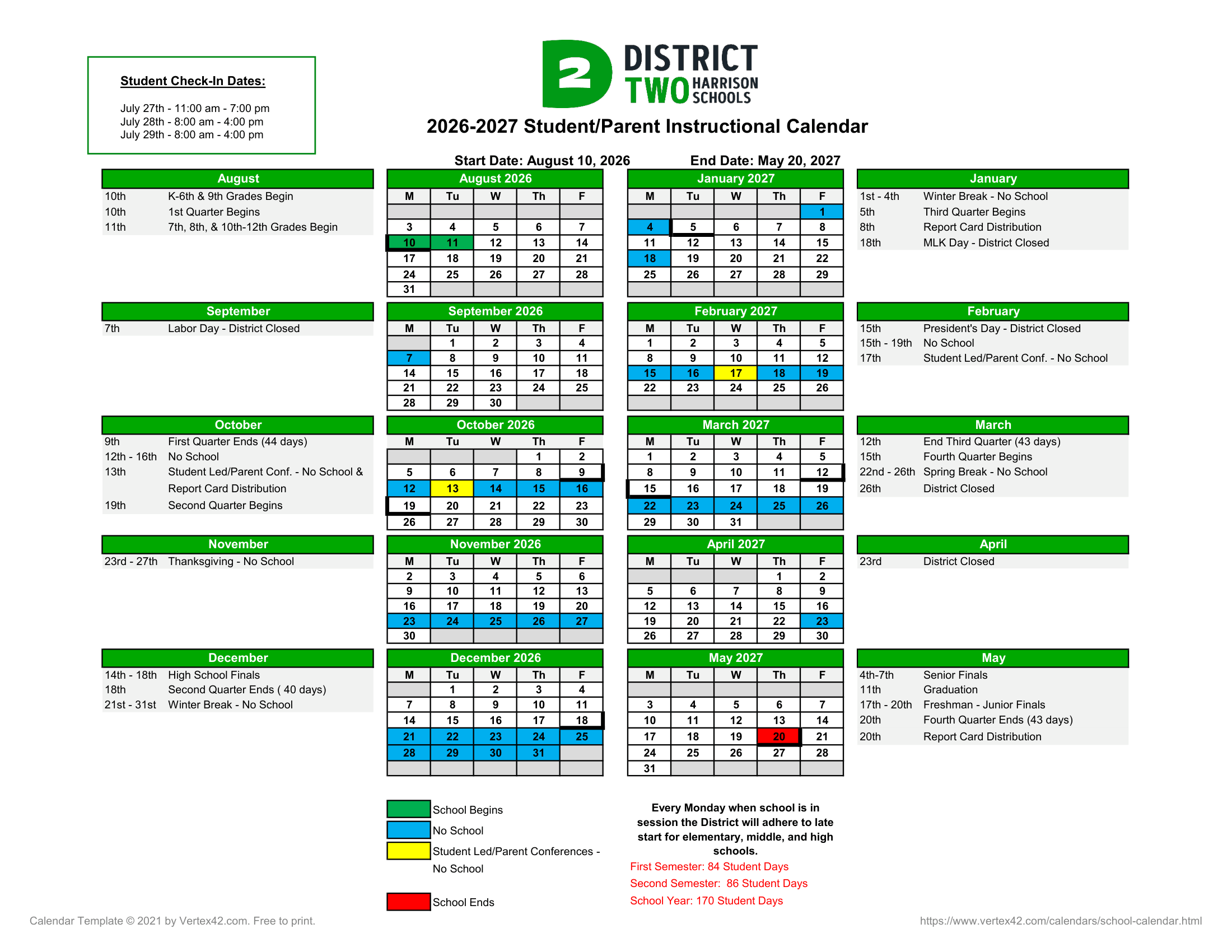 Harrison School District Two Calendar 2026-2027 – Important Dates