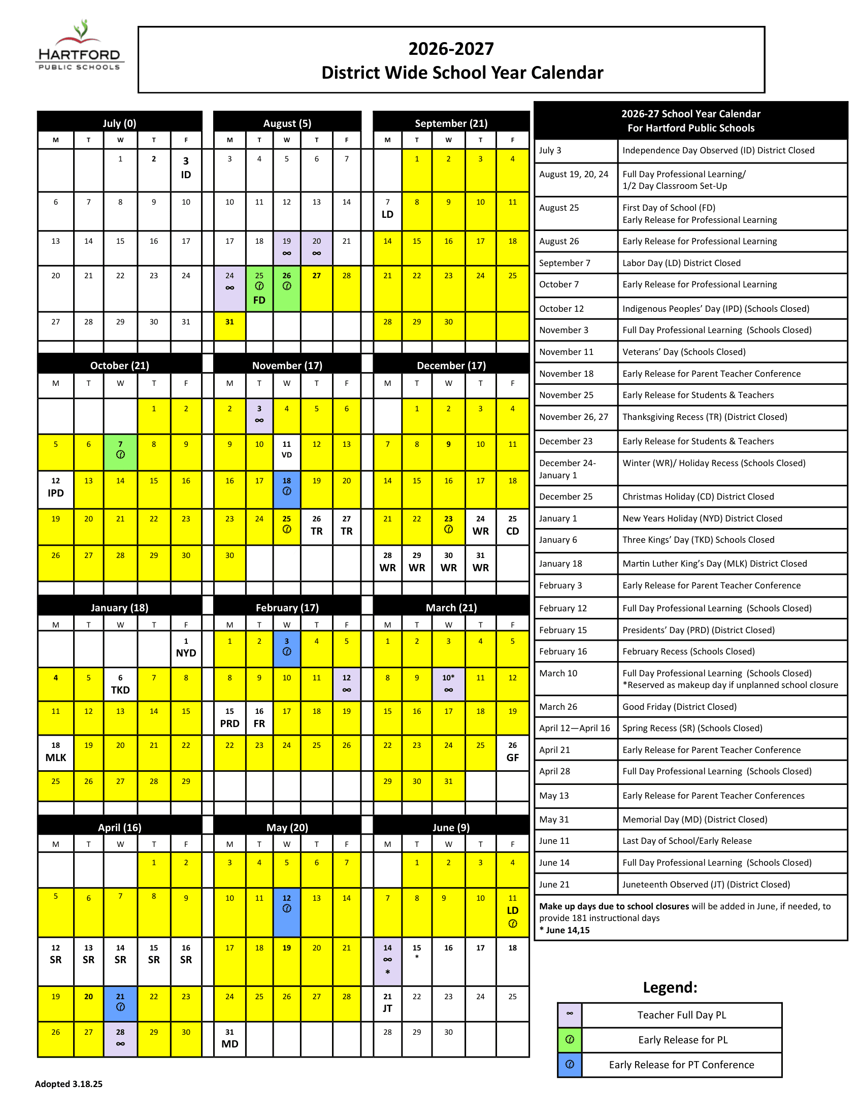Hartford Public Schools Calendar 2026-2027 – Important Dates