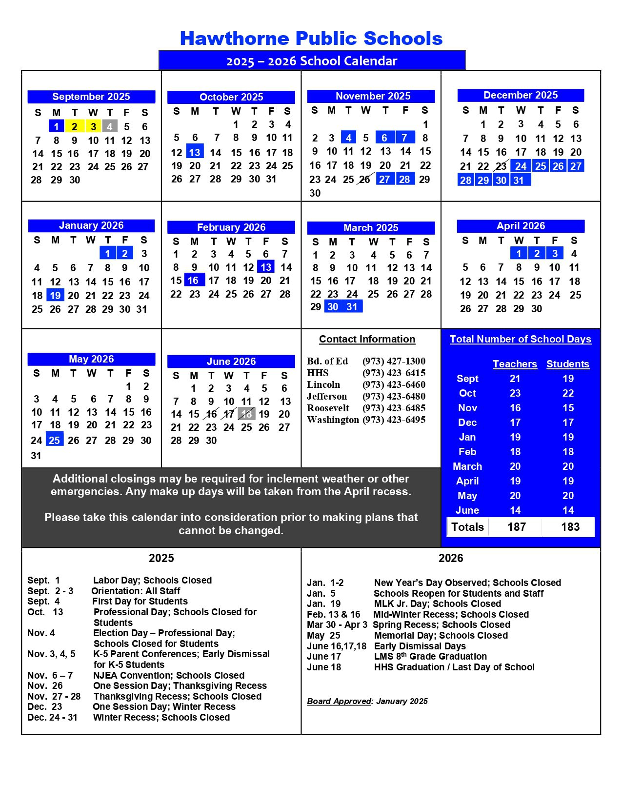 Hawthorne Public Schools Calendar (2025-2026)