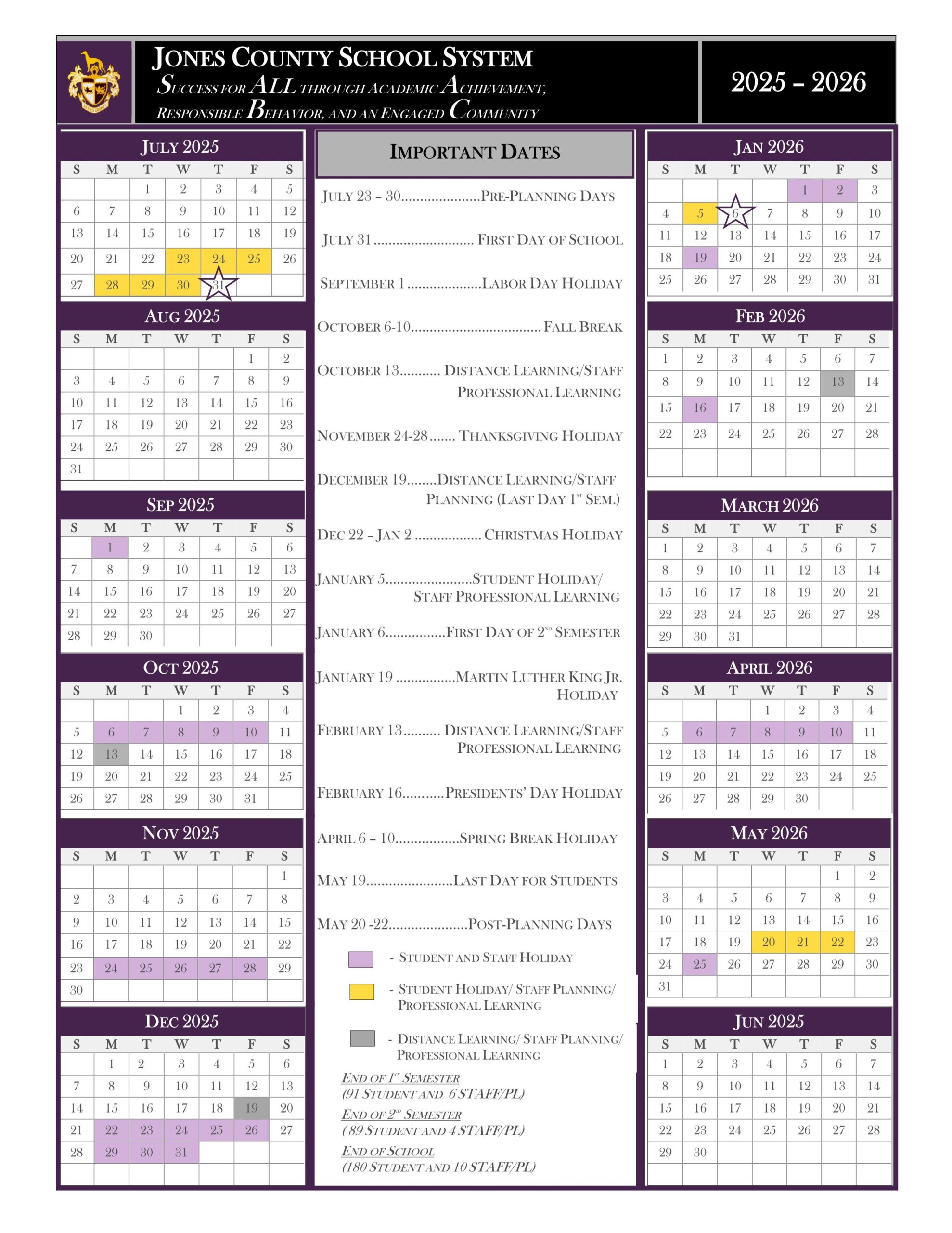 Jones County School Calendar Calendar (2025-2026)