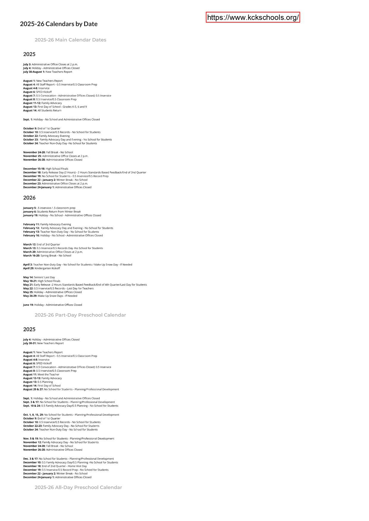 kckschools Calendar (2025-2026)