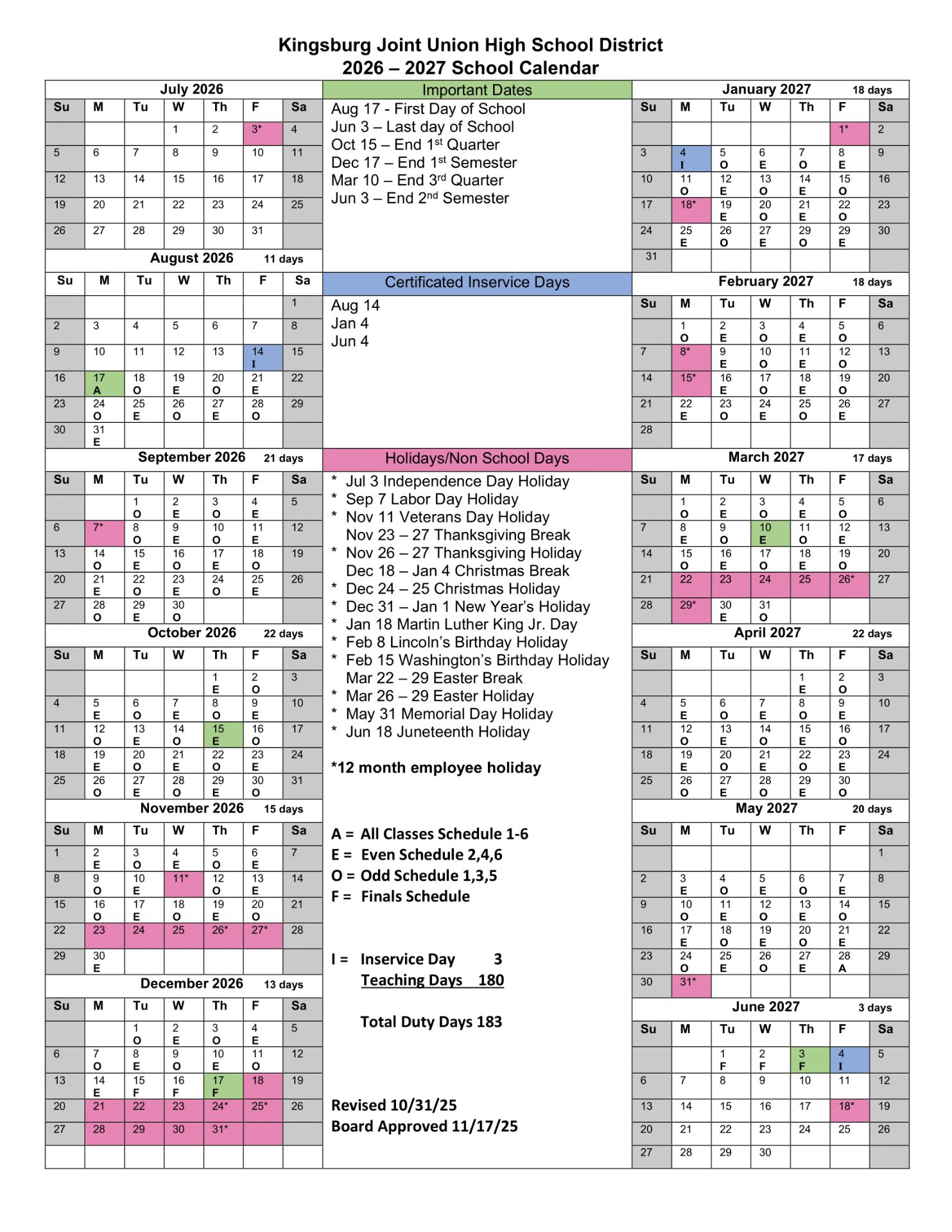 Kingsburg Joint Union High School District Calendar 2026-2027 FAQs