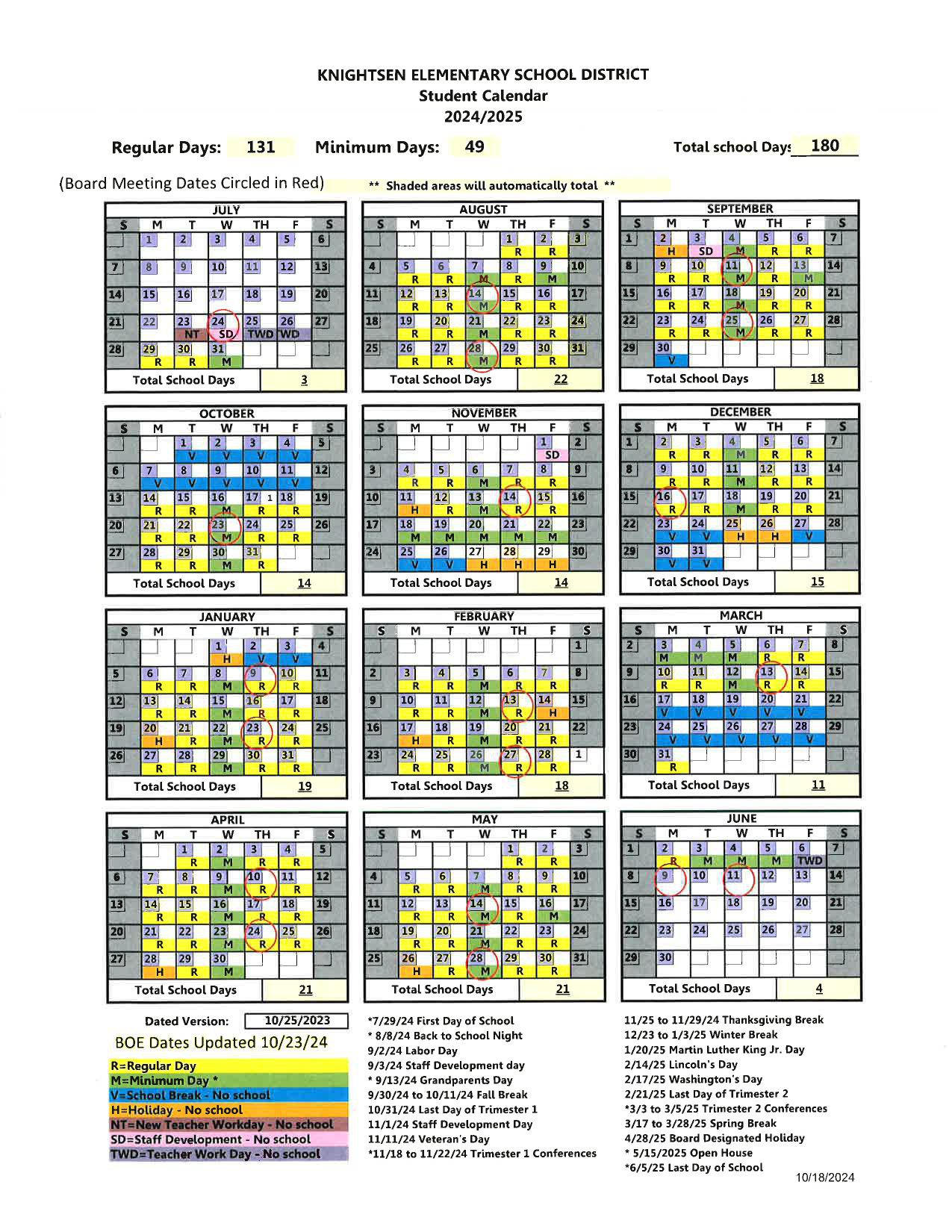 KNIGHTSEN ELEMENTARY SCHOOL DISTRICT Calendar (2024-2025)