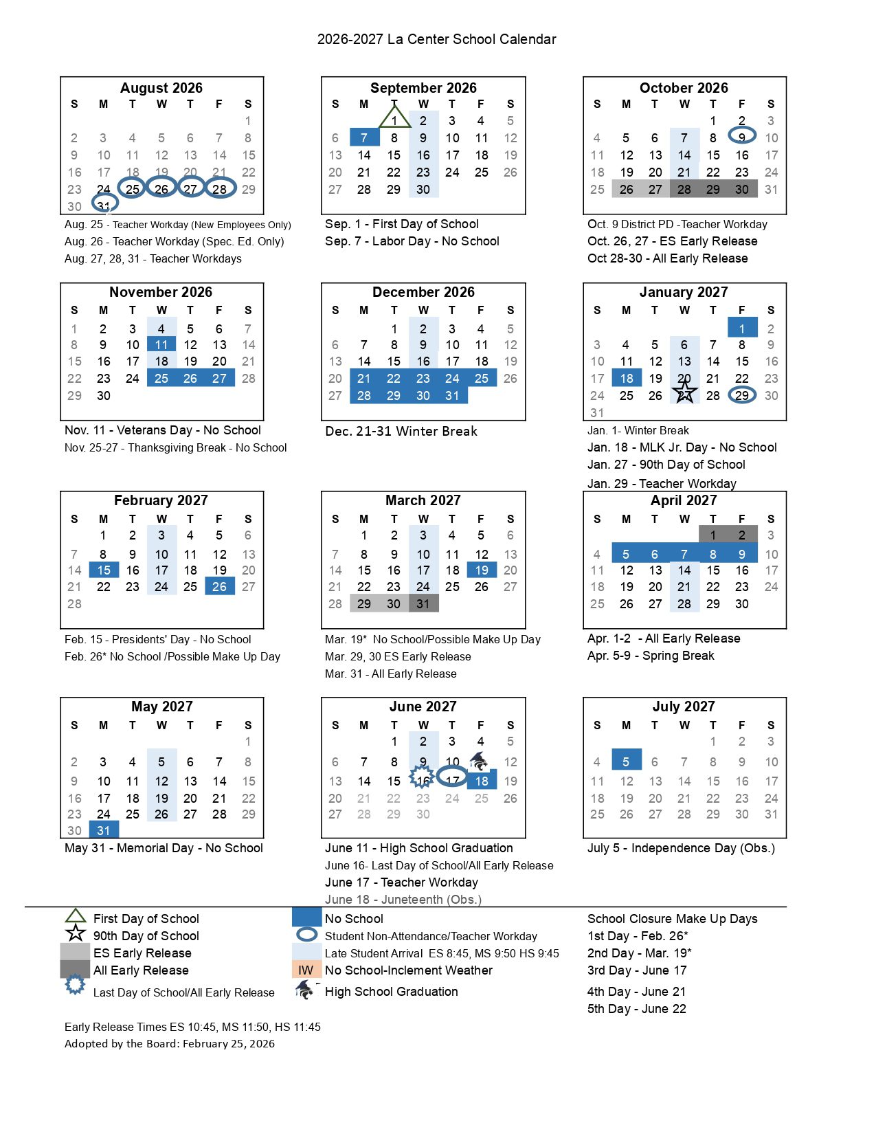 La Center School District Calendar (2026-2027)