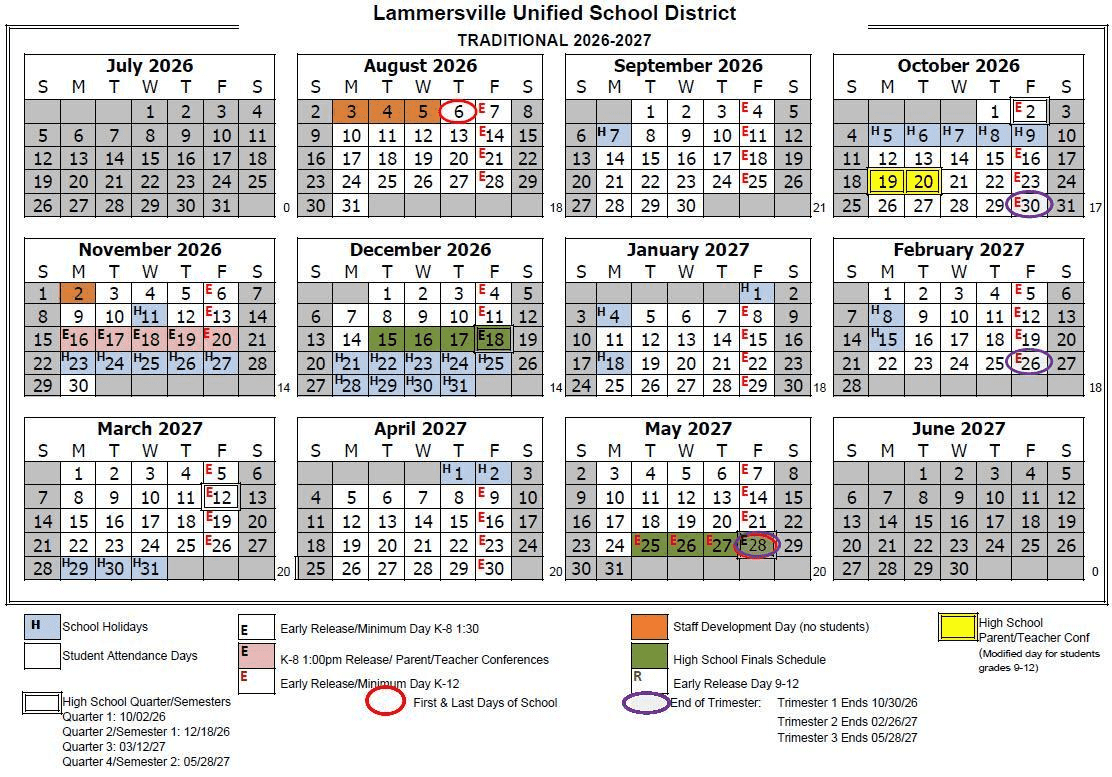 Dates are sourced from the official Lammersville Unified School District 26-27 Revised [PDF] website. Dates may change at the discretion of the district. Always verify with the official school website for the latest updates.