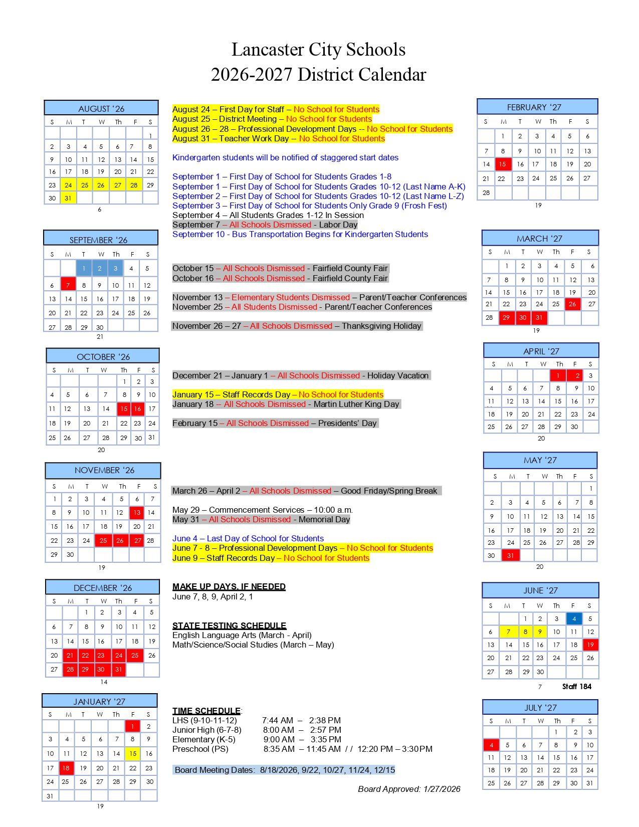 Lancaster City Schools 2026-2027 District Calendar FAQ