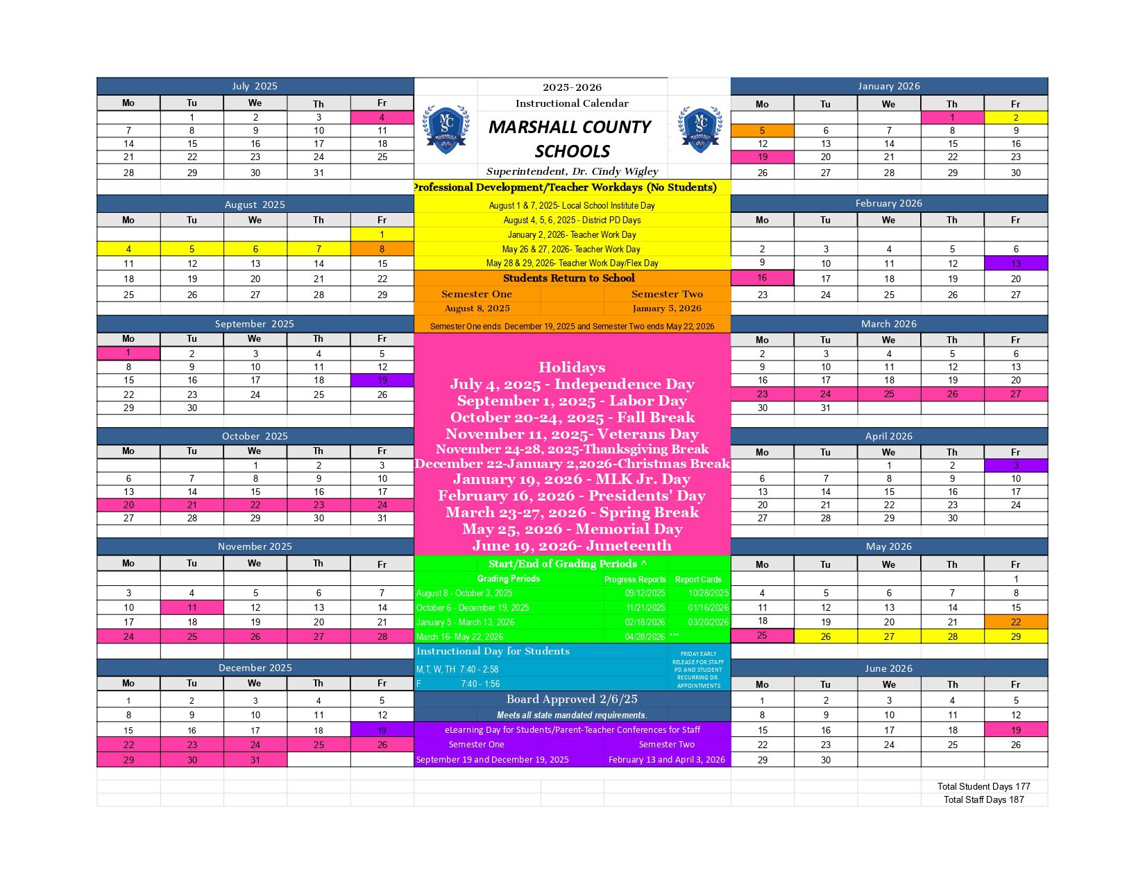 MARSHALL COUNTY SCHOOLS Calendar (2025-2026)