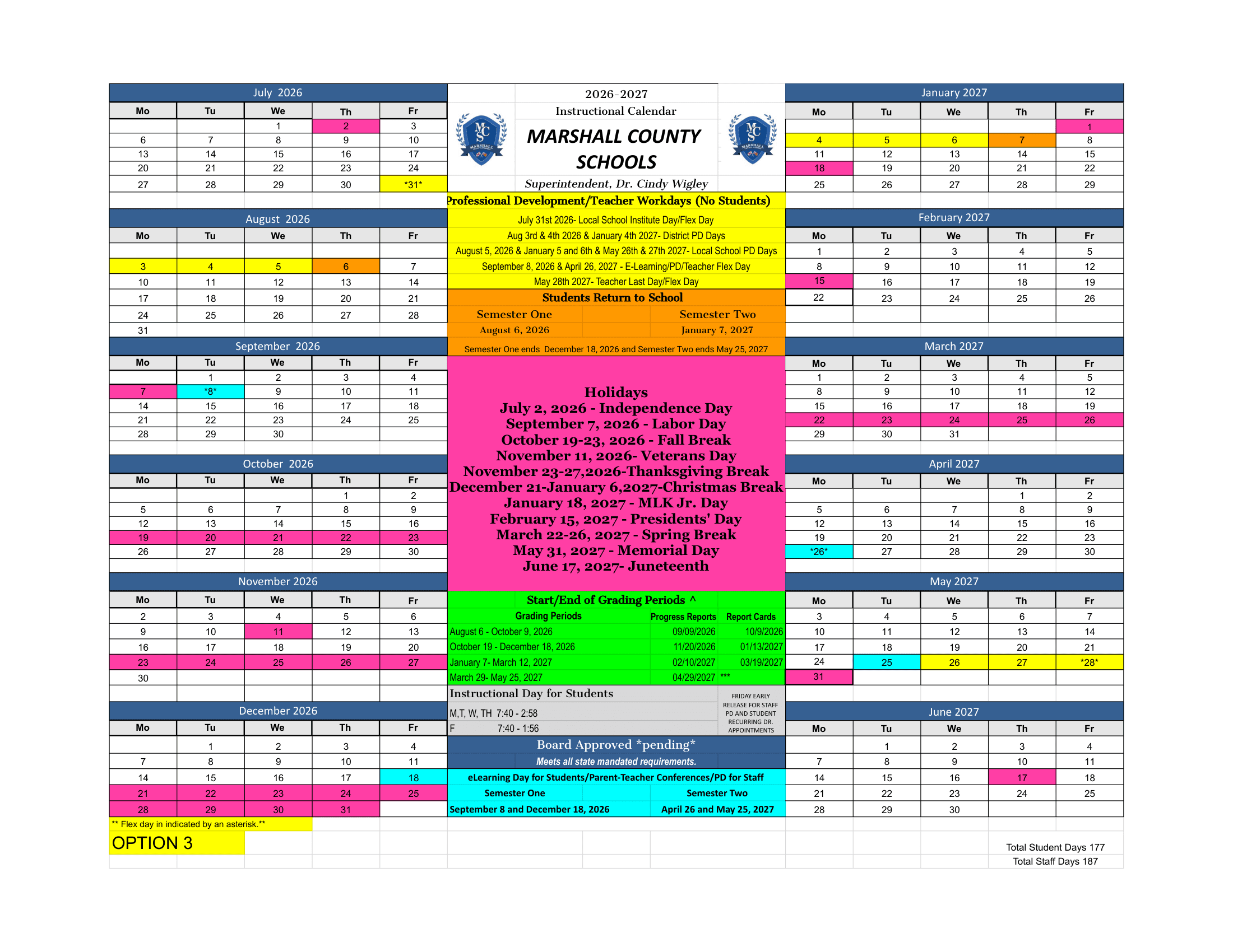 Marshall County Schools Calendar (2026-2027)