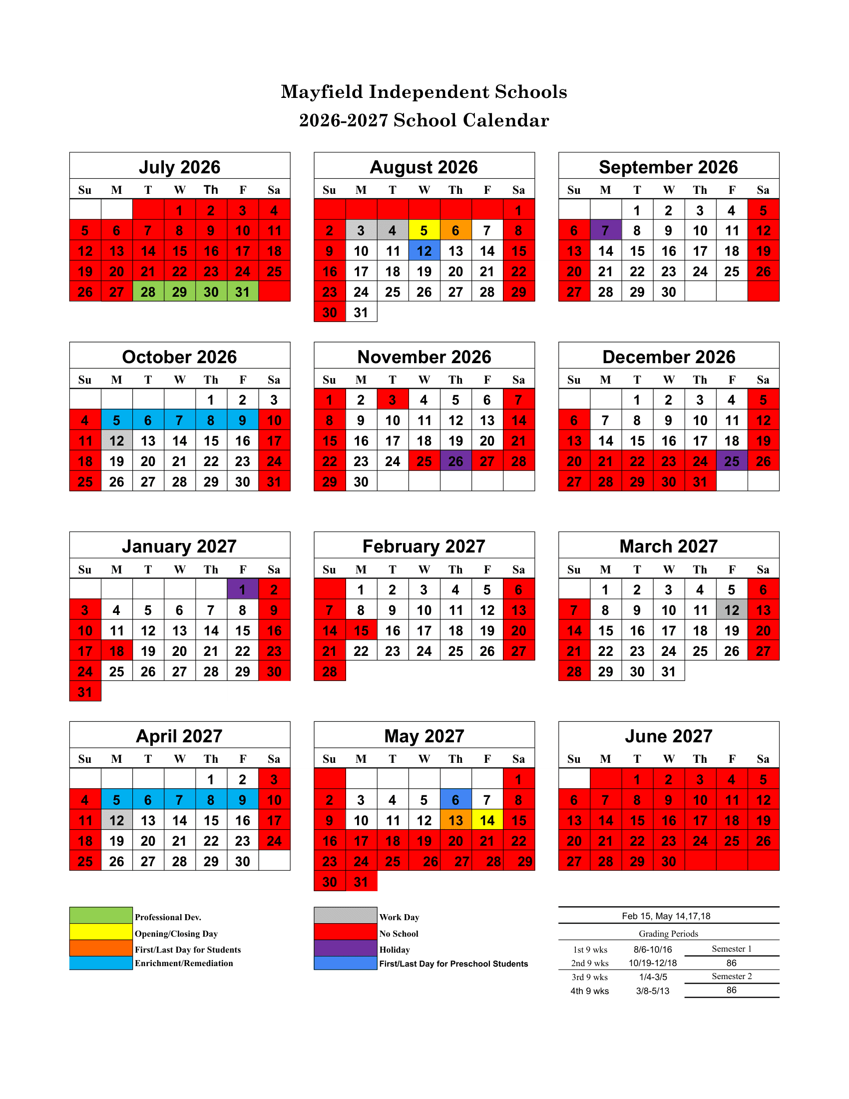 Mayfield Independent Schools Calendar 2026-2027 FAQs